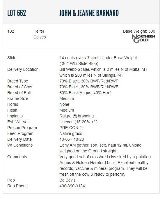John & Jeanne Barnard - 102 Heifers; Base Weight: 530