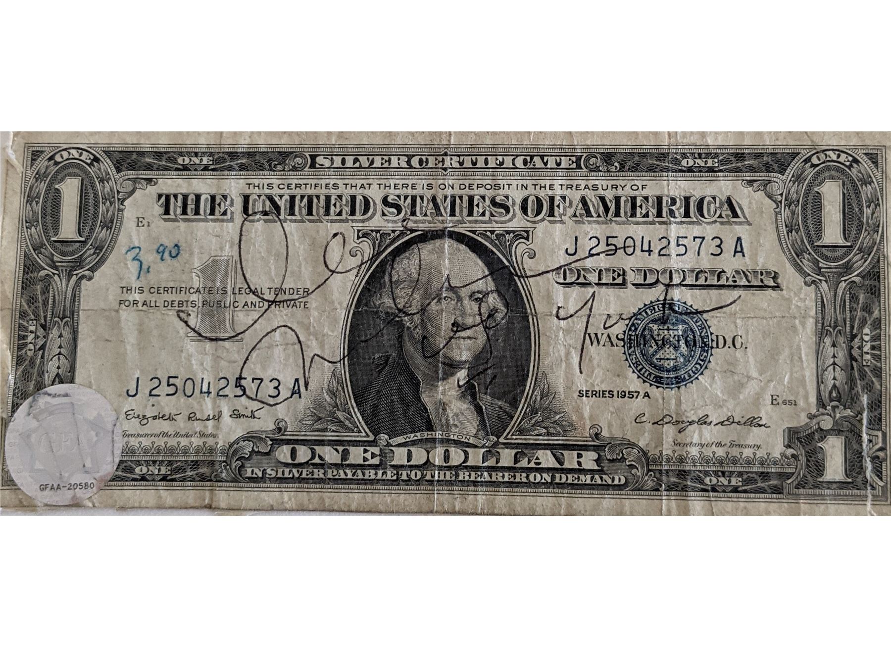 John Lennon and Yoko Ono Signed One Dollar Silver Certificate