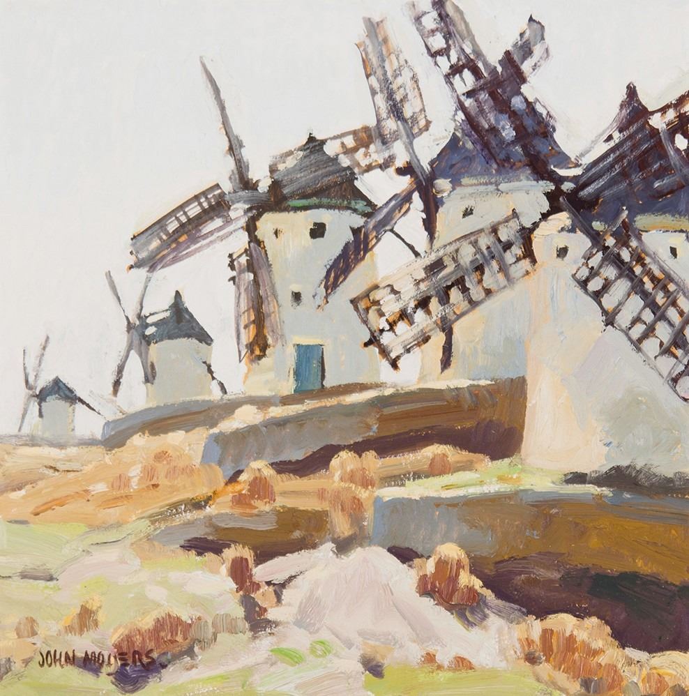 Artist: John Moyers; Title: The Land Of Don Quixote; Medium: Oil on board; Dimensions: 12 x 12 inches; Signed: Signed lower left; Framed/Base: 16 x 16 inches