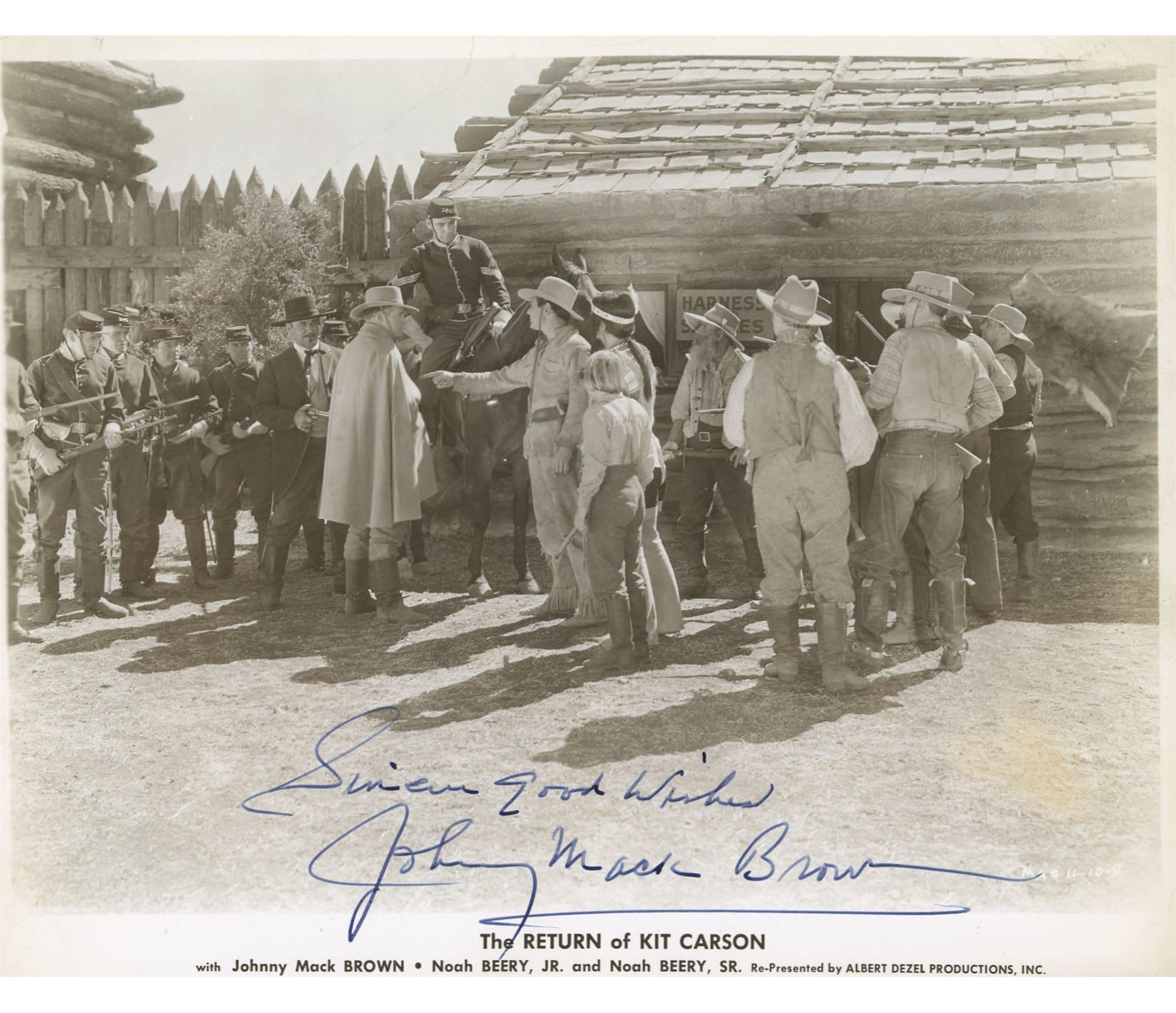 Johnny Mack Brown signed 8x10 black and white movie still photograph from Kit Carson.