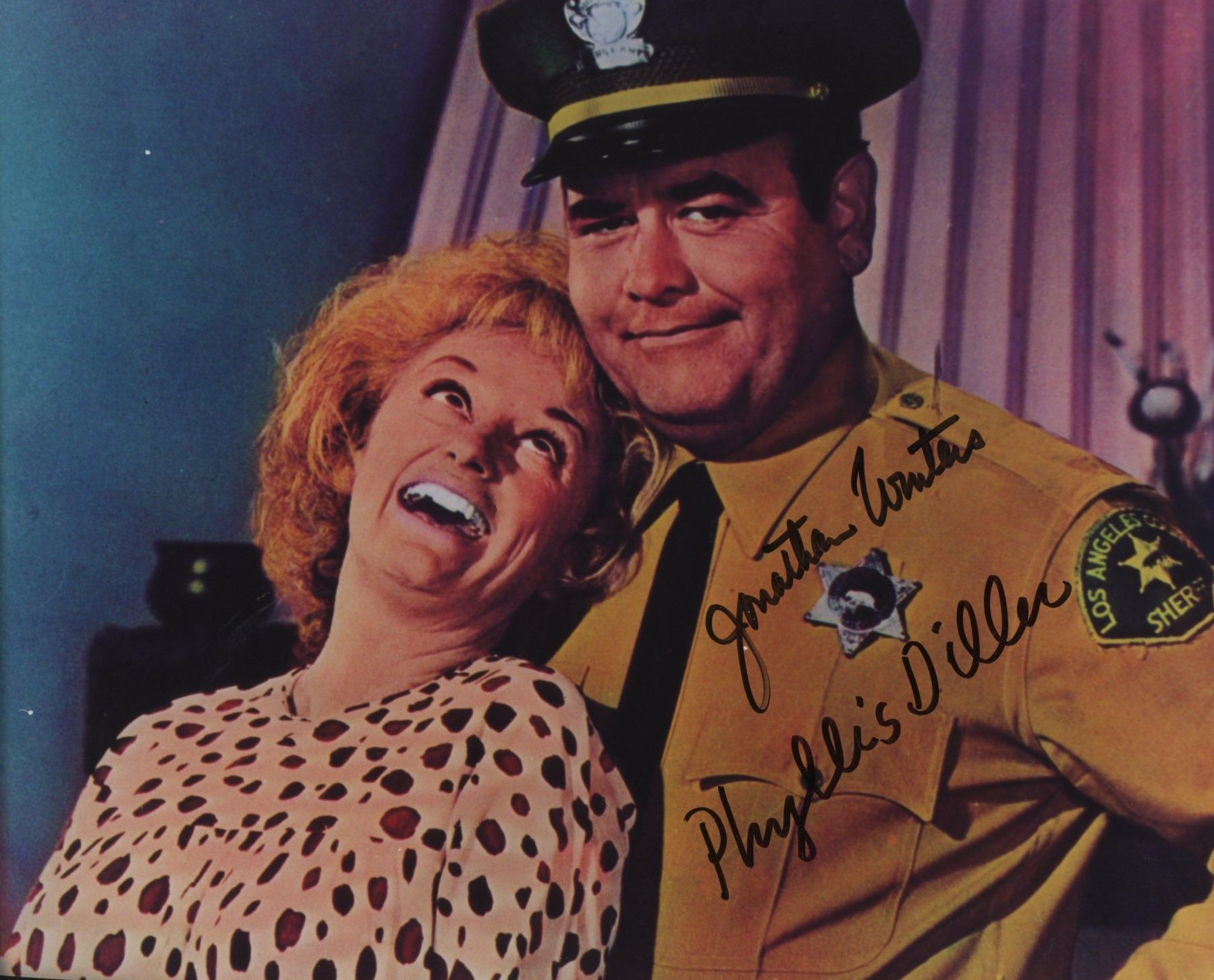 "Eight on the Lam" 8x10 movie photo autographed by Jonathan Winters and Phyllis Diller.