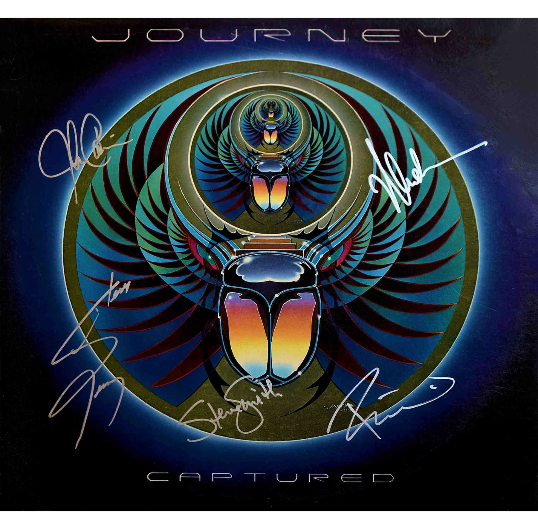 Journey's 1981 Captured album. Signed: Steve Perry, Ross Valory, Steve Smith, Jonathan Cain, and Neal Schon.