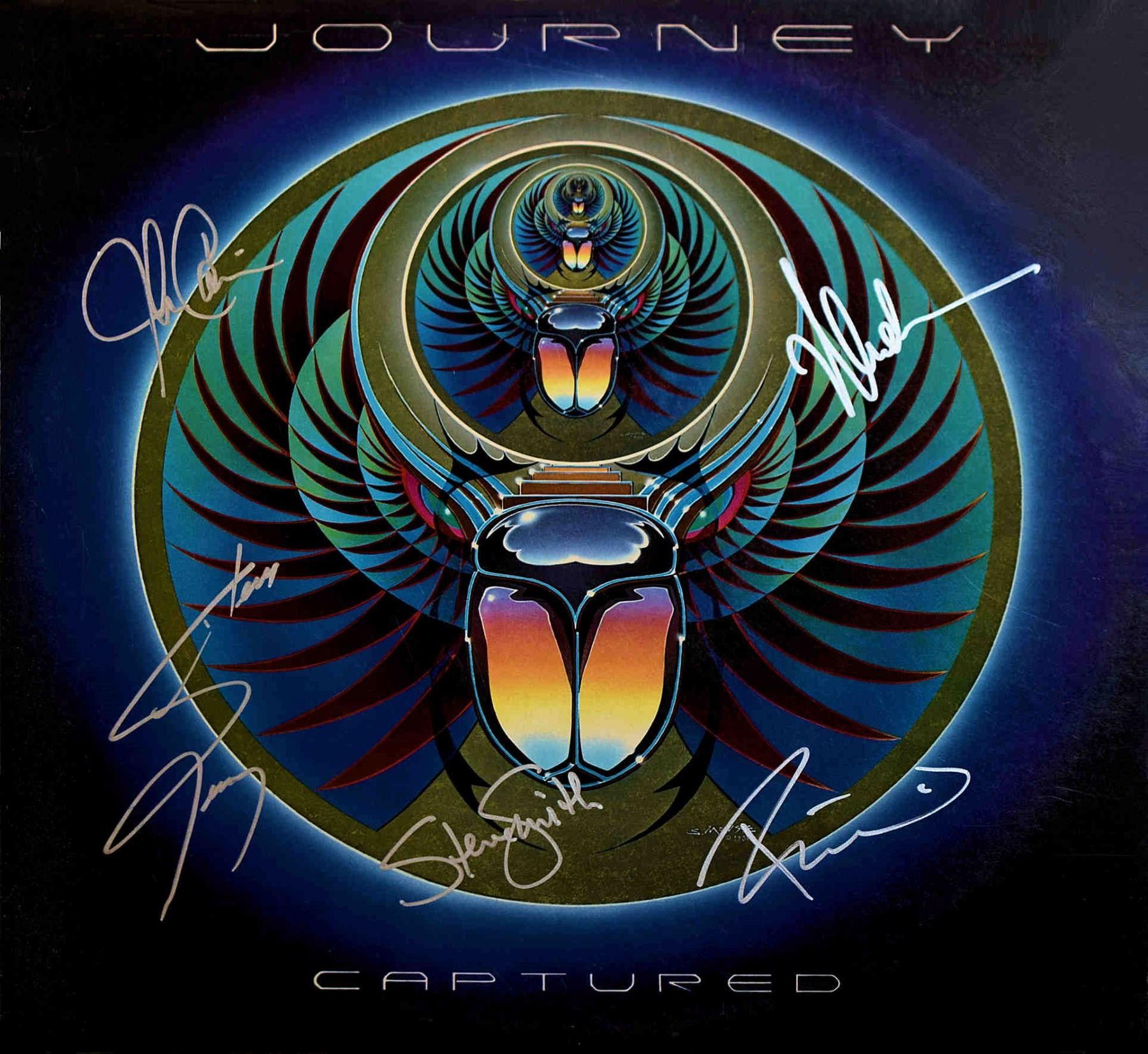Journey's 1981 Captured album. Signed: Steve Perry, Ross Valory, Steve Smith, Jonathan Cain, and Neal Schon.