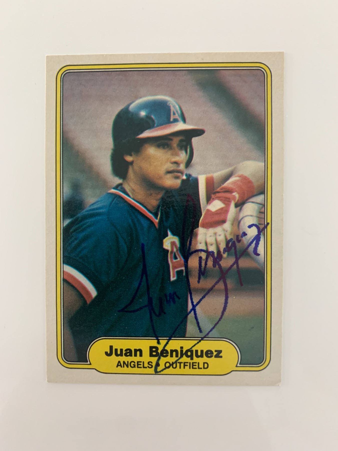 Juan Beniquez signed baseball card. Fleer 1982. 2x3 inches