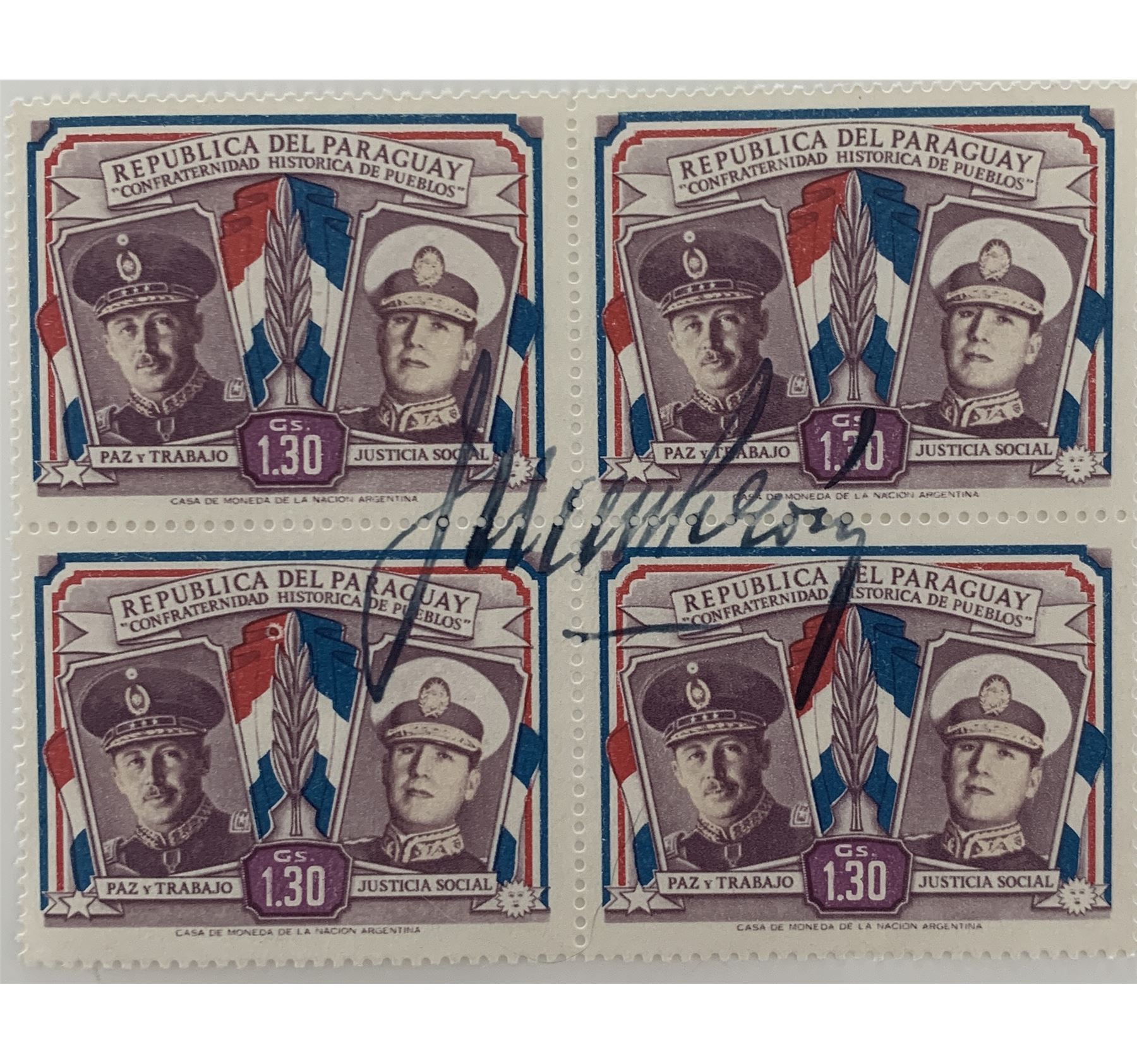Juan Domingo Peron signed stamps. This is the character Evita was written about