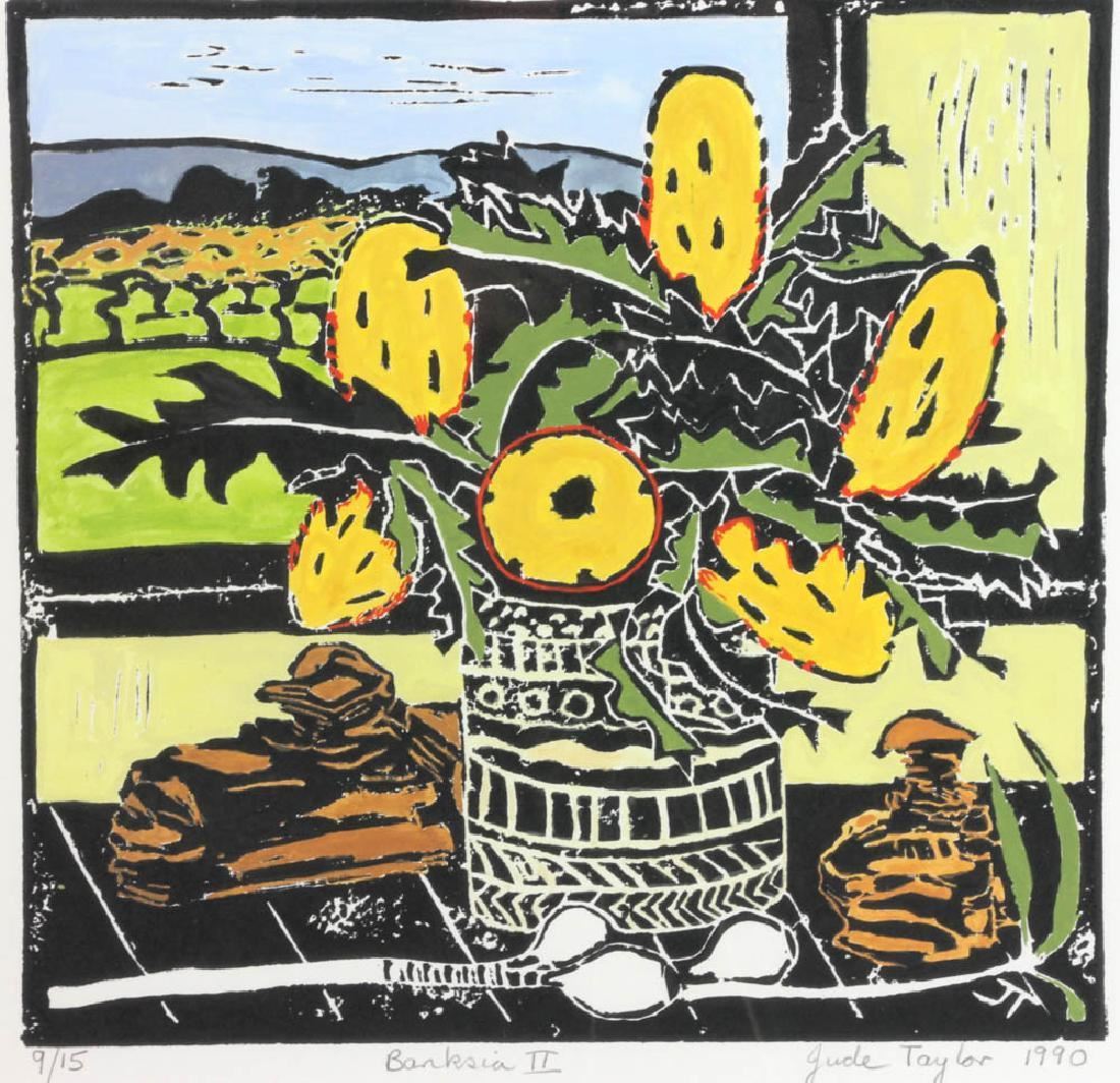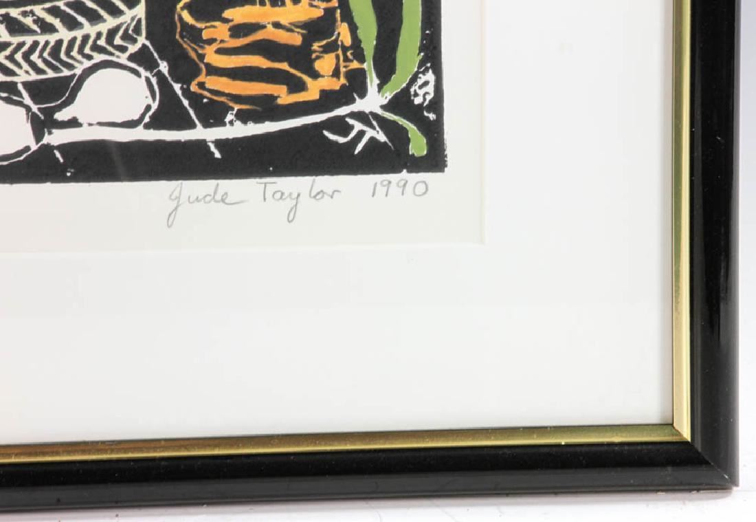 Jude Taylor, print, signed lower right, dated 1990 and numbered 9/15, 21" x 21". Provenance: Ursula Bailey Marvin estate.