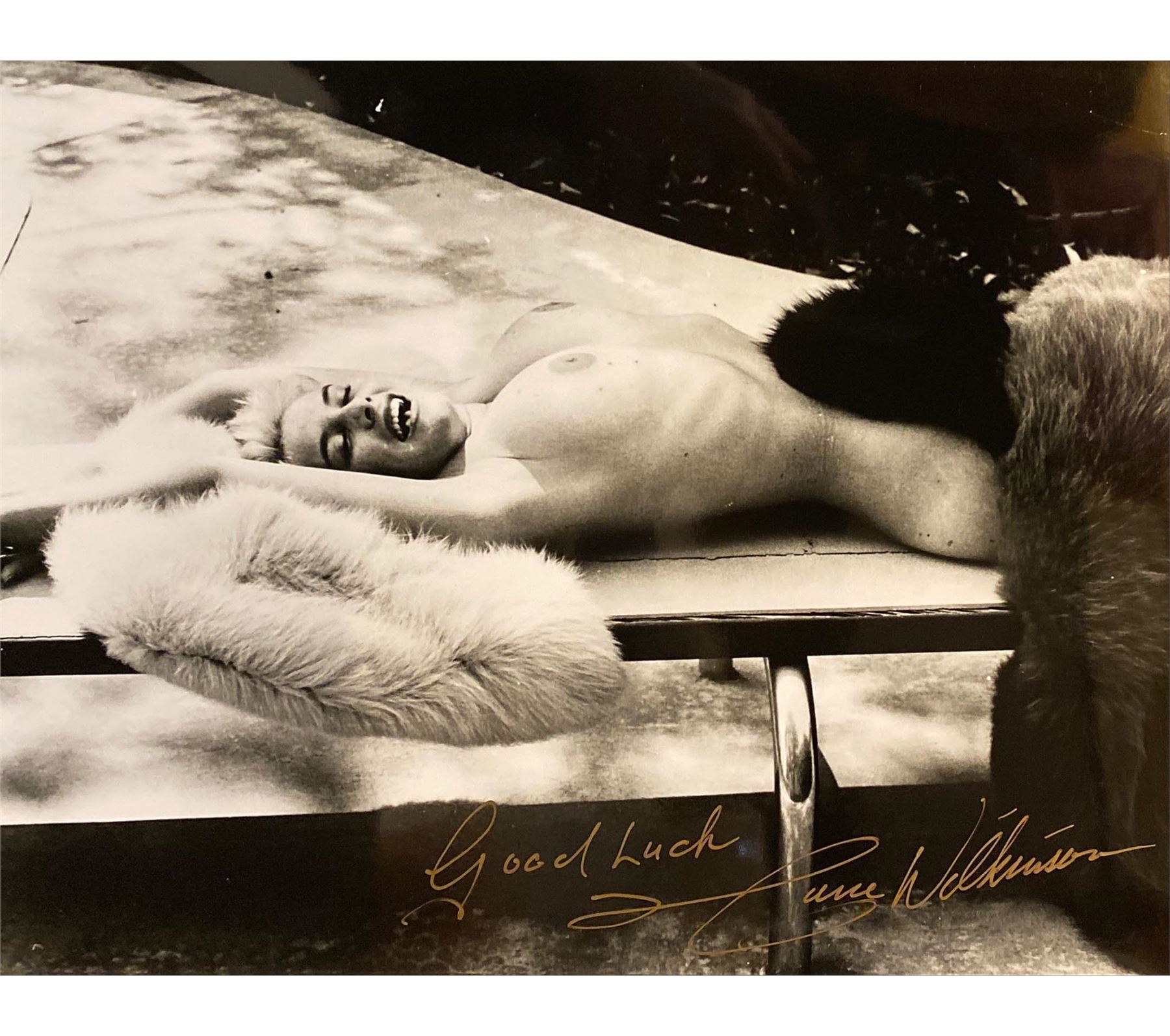 June Wilkinson signed black and white photo. 8x10 inches