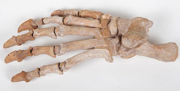 Juvenile Cave Bear Foot. Ursis spelleus, between 20,000 and 50,000 years old. 10� inches long x 5 inches wide. Either from Rumania or Russia.