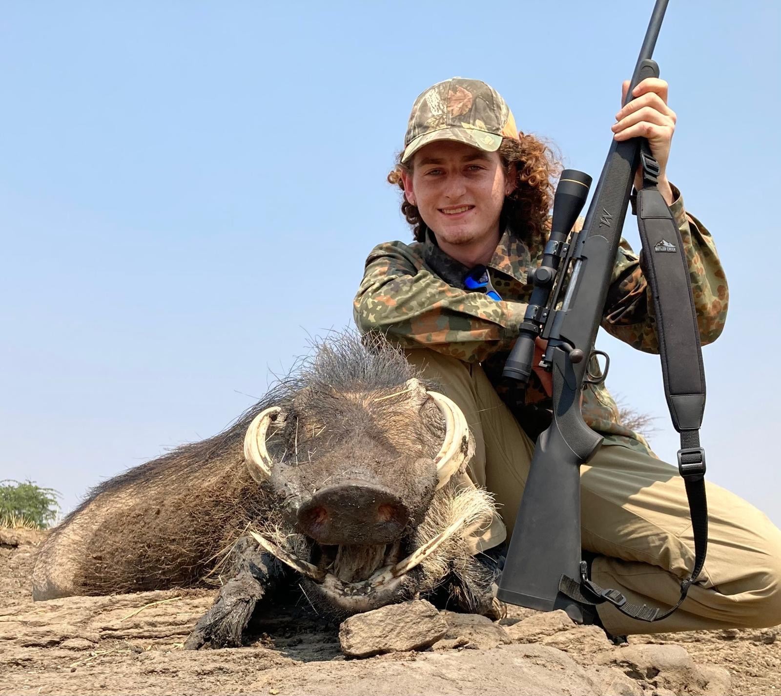 All hunting permits and taxes for FIVE cull animals (male or female) selected by your hunting guide from among Warthog, Hartebeest, Gemsbuck/oryx, and eland cow included. (Note: eland cows frequently have unusually long or interesting horns, and old bull oryx have magnificent mass in beautiful horns shortened by fighting.) Subject to time available, unlimited jackals (or baboons) may be taken.