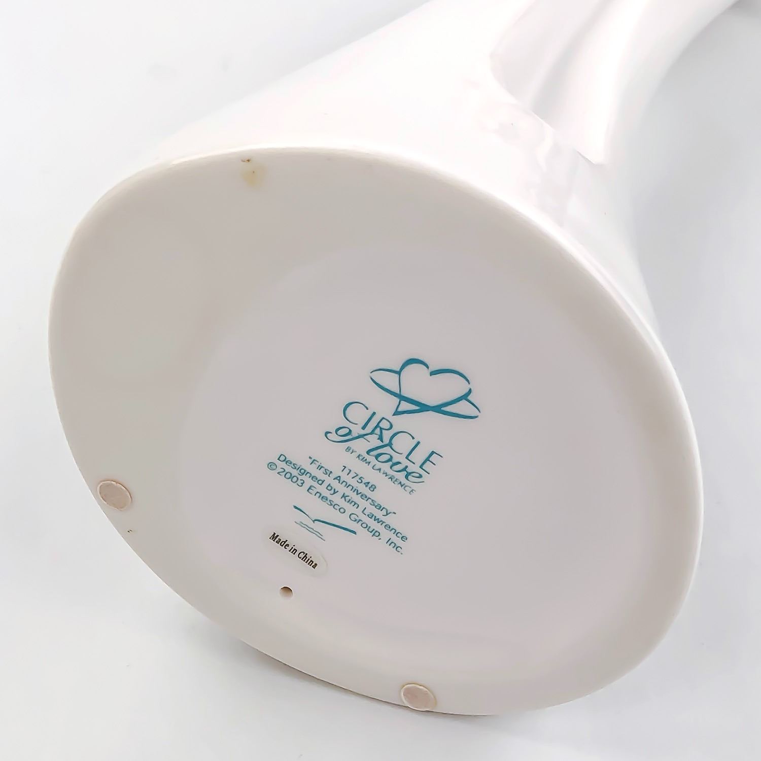#8546 - CIRCLE OF LOVE - FIRST ANNIVERSARY PORCELAIN SCULPTURE DESIGNED BY KIM LAWRENCE, COPYRIGHT 2003 ENESCO GROUP INC, MEASURES 11” (28 CM) TALL, 3.5” (9 CM) BASE WIDTH