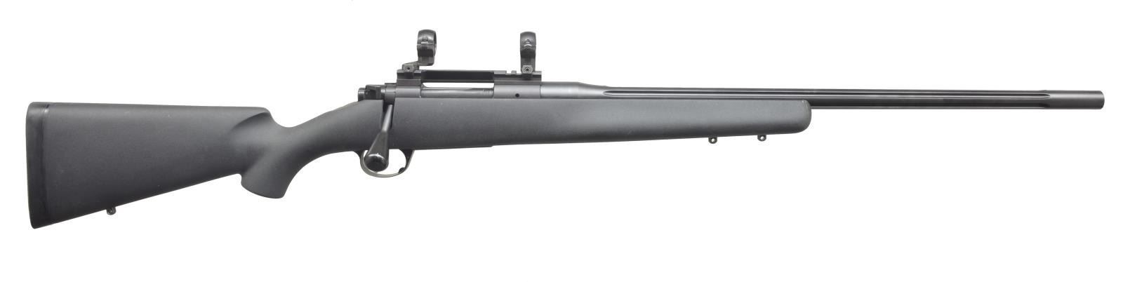 Cal. 308 Win. S# KW30879. Bbl. 24" of Match grade fluted heavy weight. 2 Lug action w/ claw extractor. M70 style safety & enlarged bolt knob. Fitted w/ 1 piece scope base & rings. Matte black metal finish. The stock is properly shaped from a blank of tough laminated wood & finished w/ textured matte black epoxy for both function & durability w/ Kimber solid black recoil pad. Mfg. 2009-2013. UNATTACHED ACCESSORIES: cardboard shipping box containing owner's manual & trigger lock. CONDITION: near new retaining 99% metal finish. Stock shows light scuffs. Bright near excellent bore. (20-2490/DS). MODERN. $2,000-2,500.