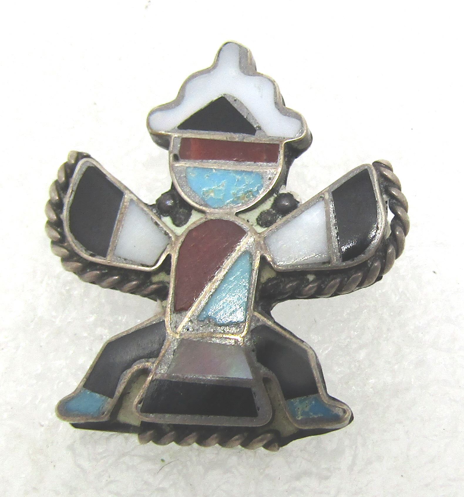 OLD PAWN BROOCH WITH INLAY: TURQUOISE, RED CORAL, MOP AND ONYX. NATIVE AMERICAN SOUTHWEST INDIAN JEWELRY. 25MM BY 22MM. WEIGHS 2.9 GRAMS, NO MARK, TESTED STERLING. EXCELLENT CONDITION VINTAGE ESTATE. USASHIPPING $5.