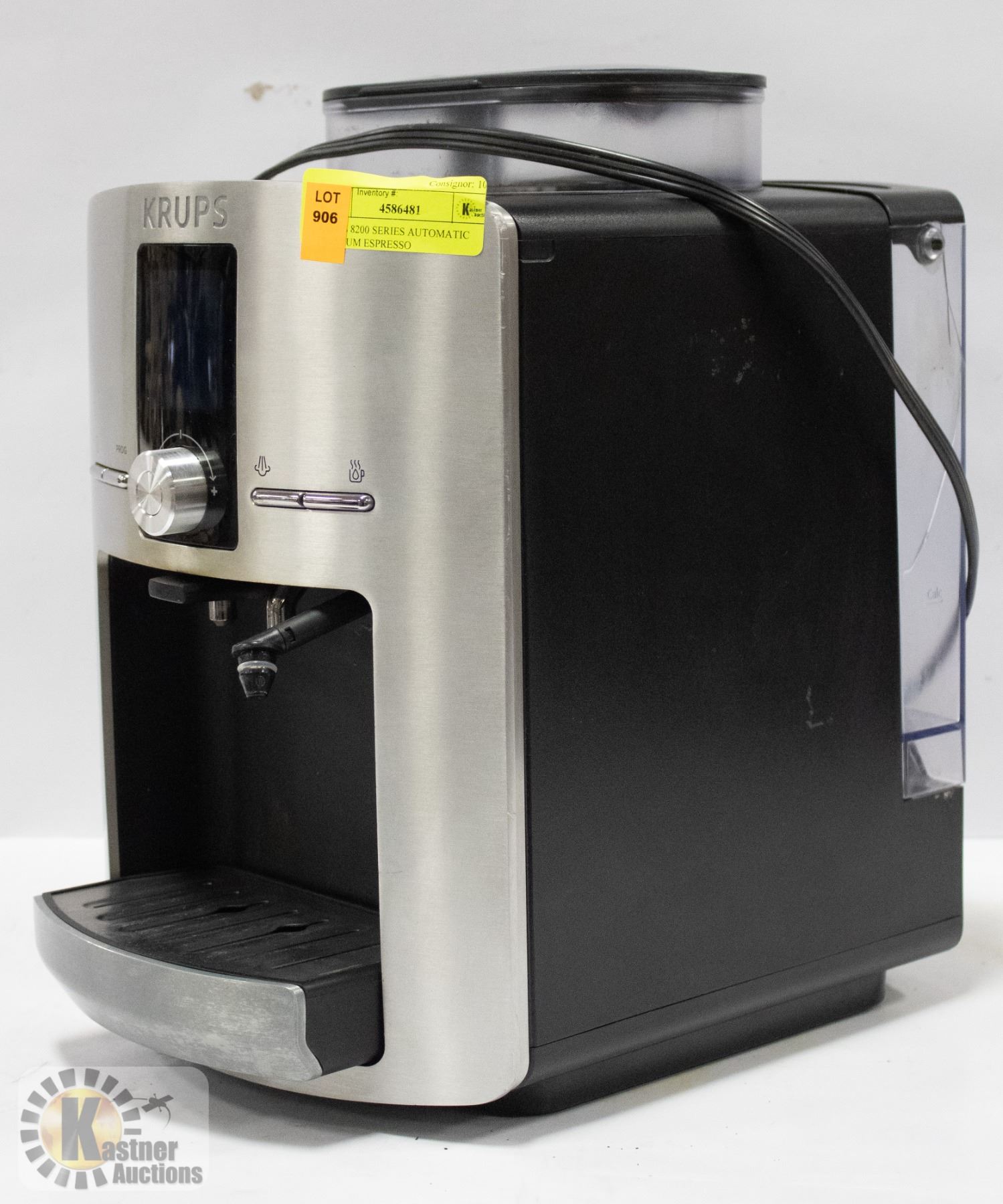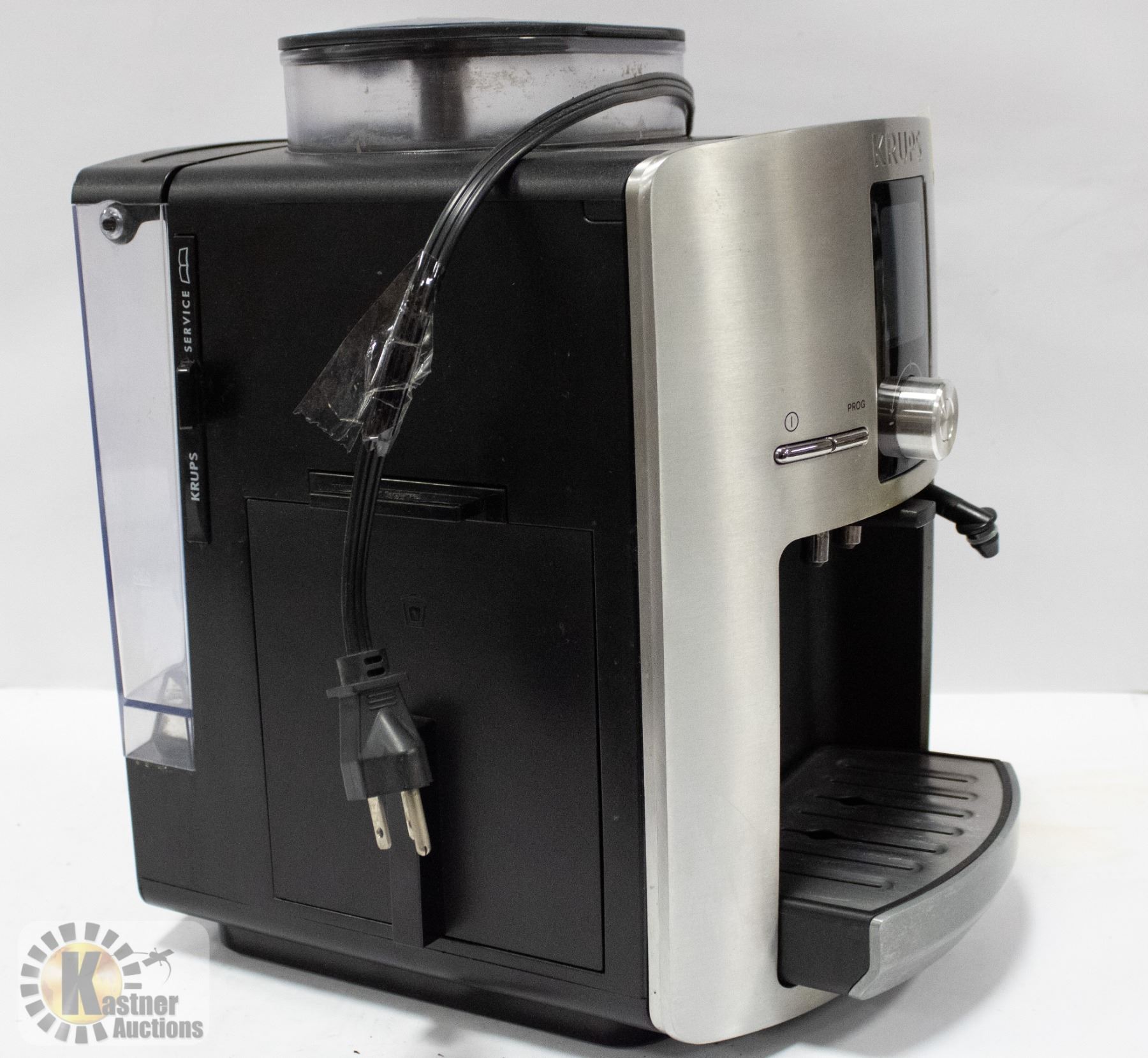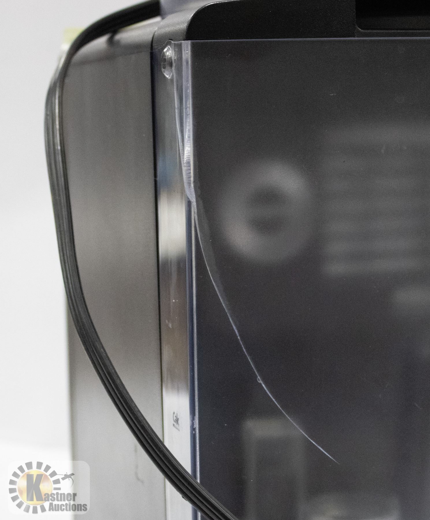 MACHINE, STAINLESS STEEL, HIGH QUALITY MULTIPLE COFFEE SETTINGS, DIGITAL DISPLAY, STEAM FROTHER, *WATER RESERVOIR HAS CRACK, NEEDS REPLACING OR TAPING, STILL FUNCTIONAL AS IS*, MACHINE IS TESTED, CLEANED, ALL PARTS CONFIRMED AND ASSEMBLED, SEE PICTURE FOR RESERVOIR CRACK, AMZ SES