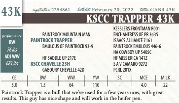 Paintrock Trapper is a bull that we’ve used for a few years now, with great results. This guy has nice shape and will work in the heifer pen.