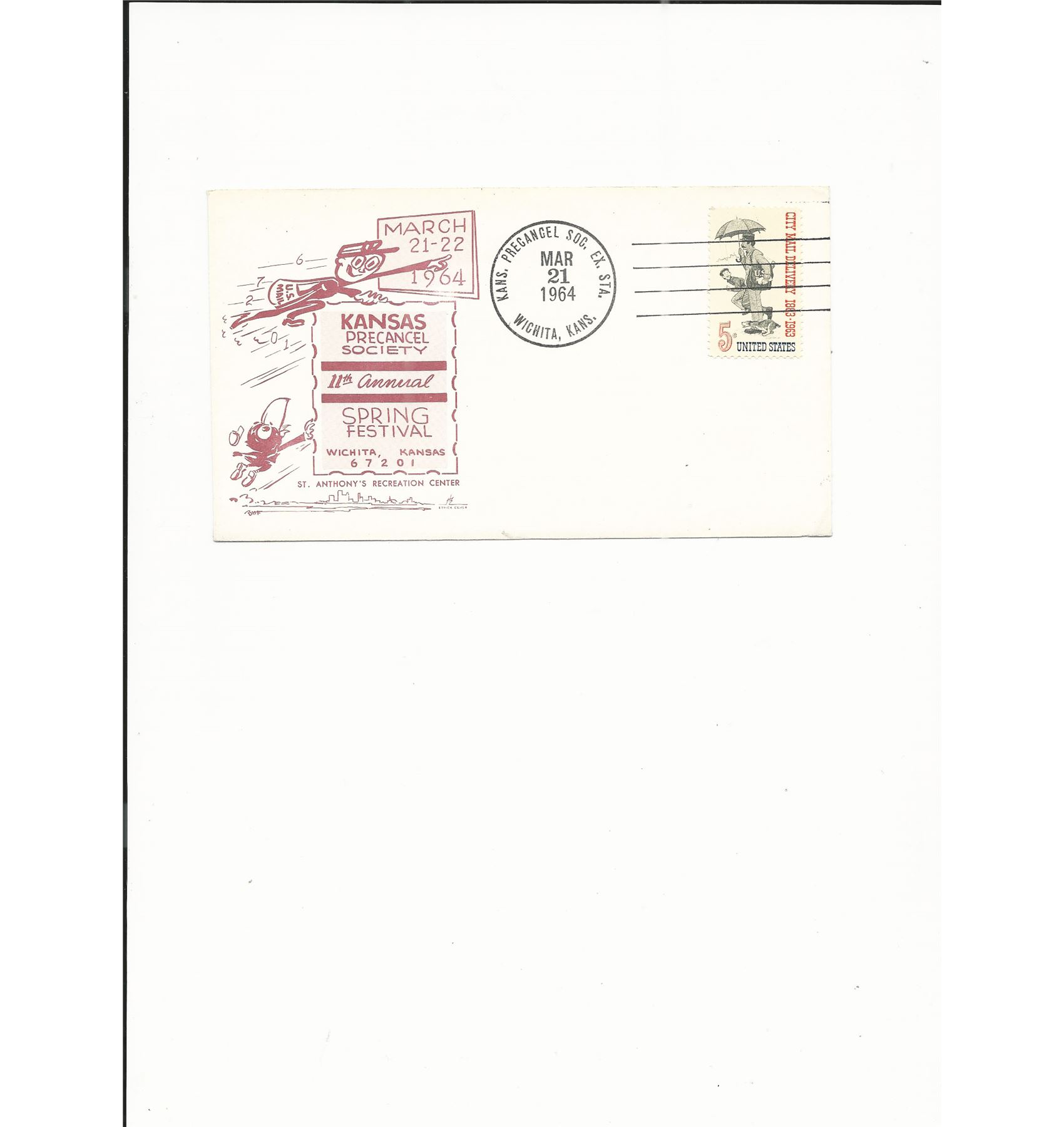 Kansas Precancel Society 11th Annual Spring Festival - First Day Cover - Wichita, Kans, March 21 1964