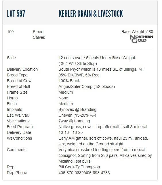 Kehler Grain & Livestock - 100 Steers; Base Weight: 560