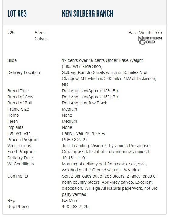 Ken Solberg Ranch - 225 Steers; Base Weight: 575