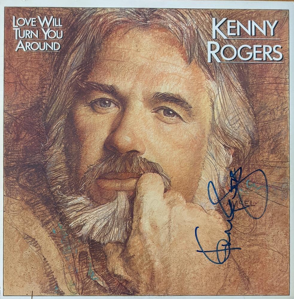 Kenny Rogers Love Will Turn You Around signed album autographed by Kenny Rogers. 12x12 inches. Vinyl Included