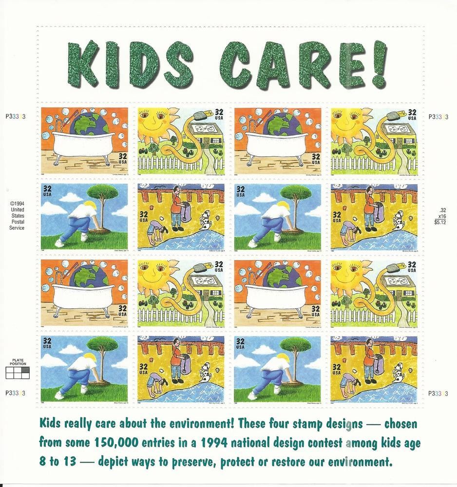 Kids Care - Earth Day Full Sheet of Sixteen 32 Cent Stamps Scott 2951-54