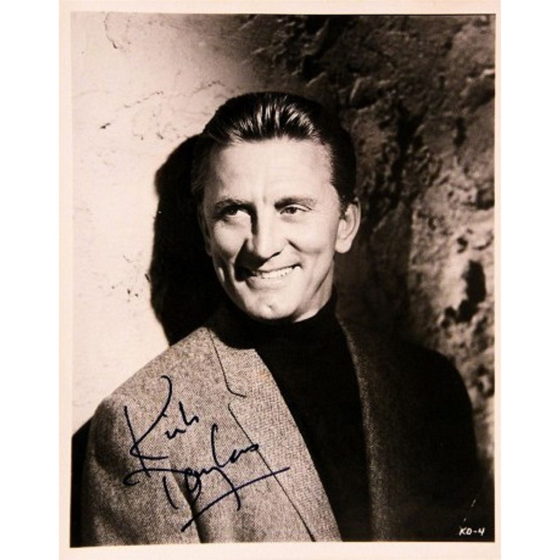 8 in. by 10 in. 1965 Black and white portrait photo autographed by Kirk Douglas.
