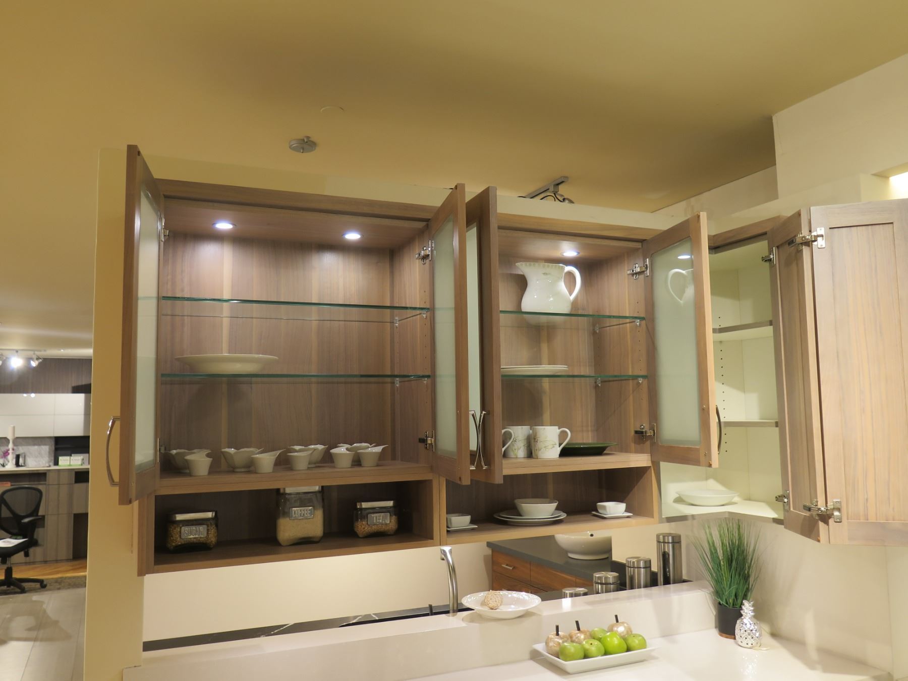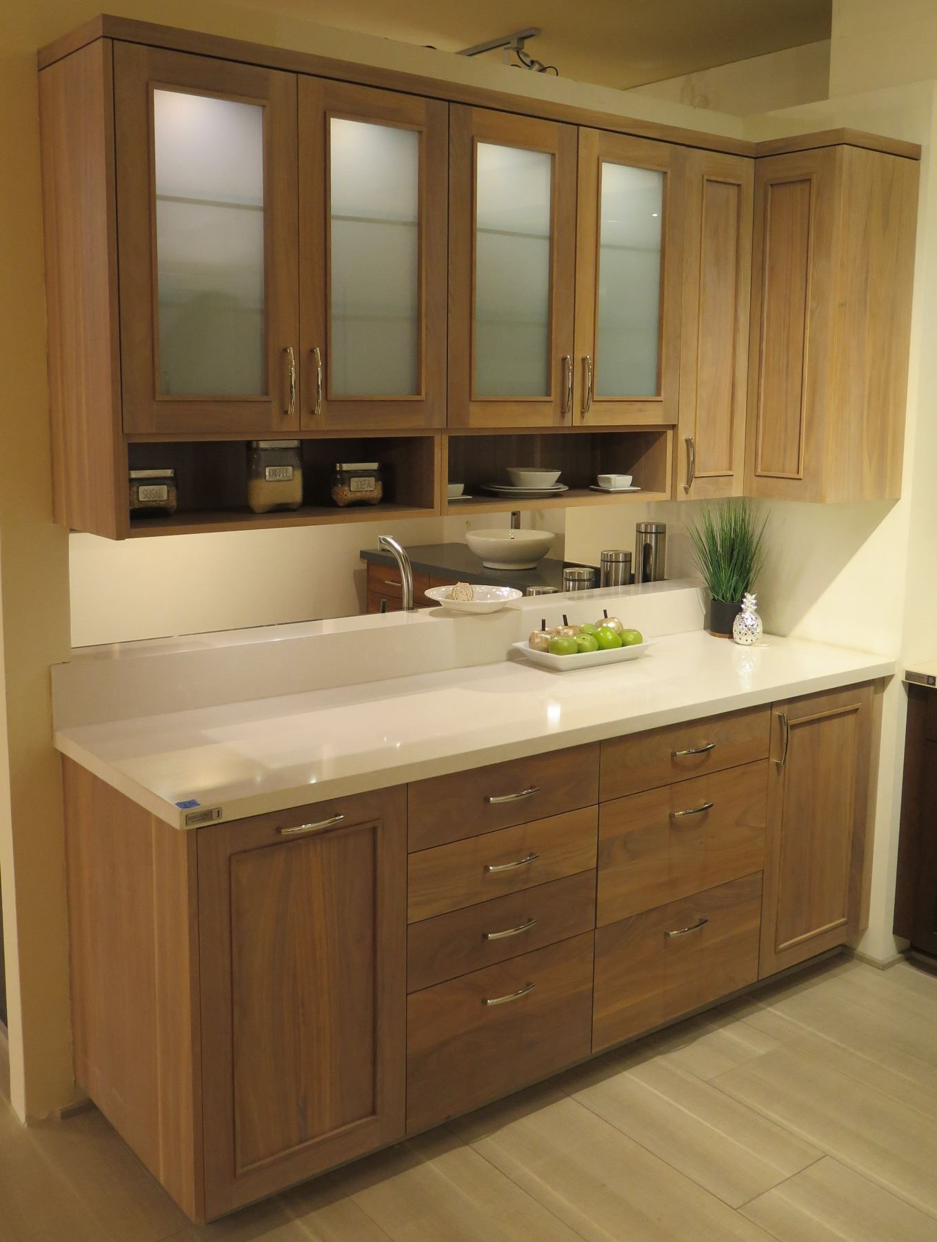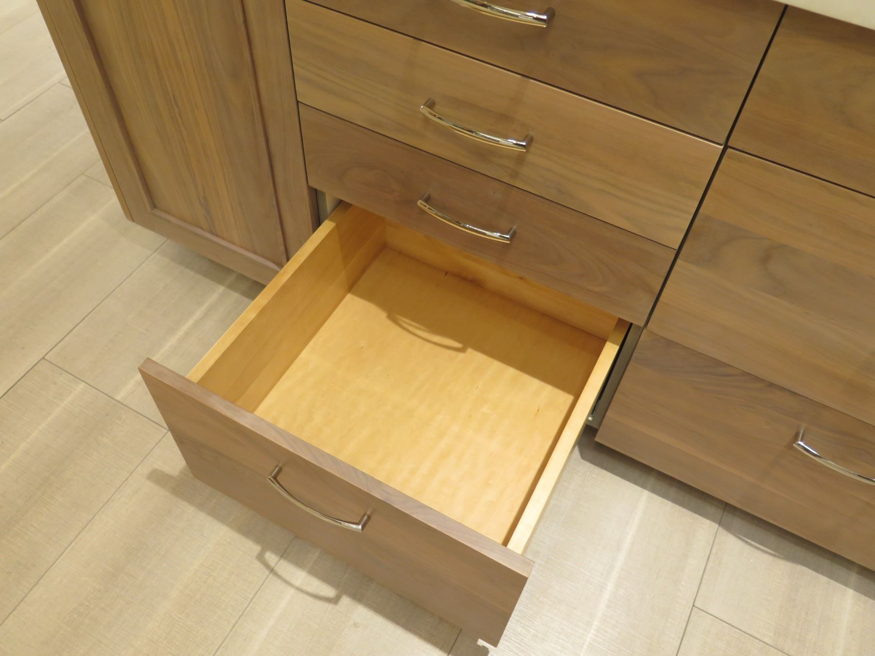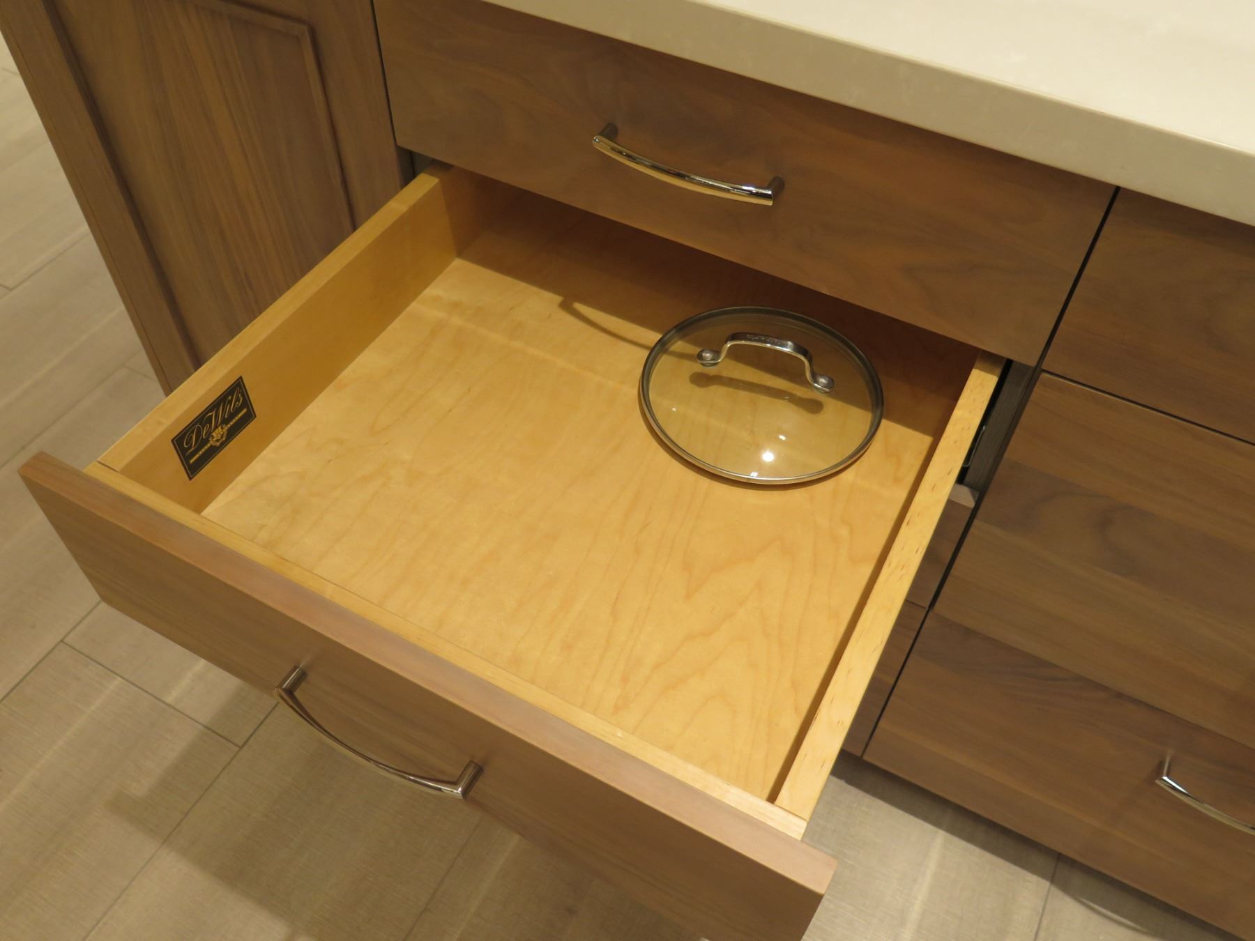 Kitchen Ensemble - Dewils Pullman Walnut Cabinets w/ Recycle Trash Bin Cabinet, Utility Pullout Rack, Silestone Yukon Blanco Counter. 5/8" Plywood construction.