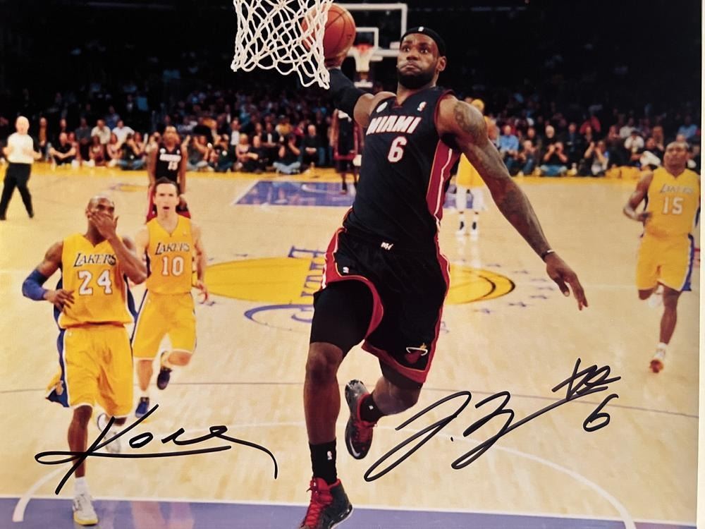 Kobe Bryant / LeBron James signed photo. 8x10 inches