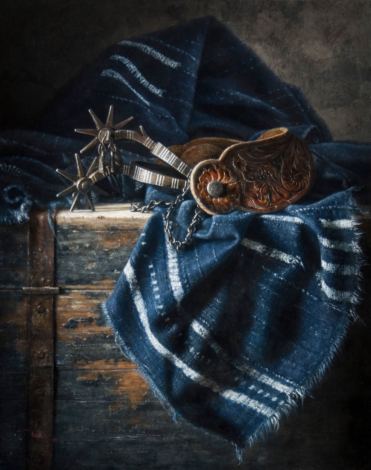 Artist: Kyle Polzin; Title: Iron and Indigo; Medium: Oil on canvas; Dimensions: 19 x 15 inches; Signed: Signed lower left; Framed/Base: 29 x 25 inches