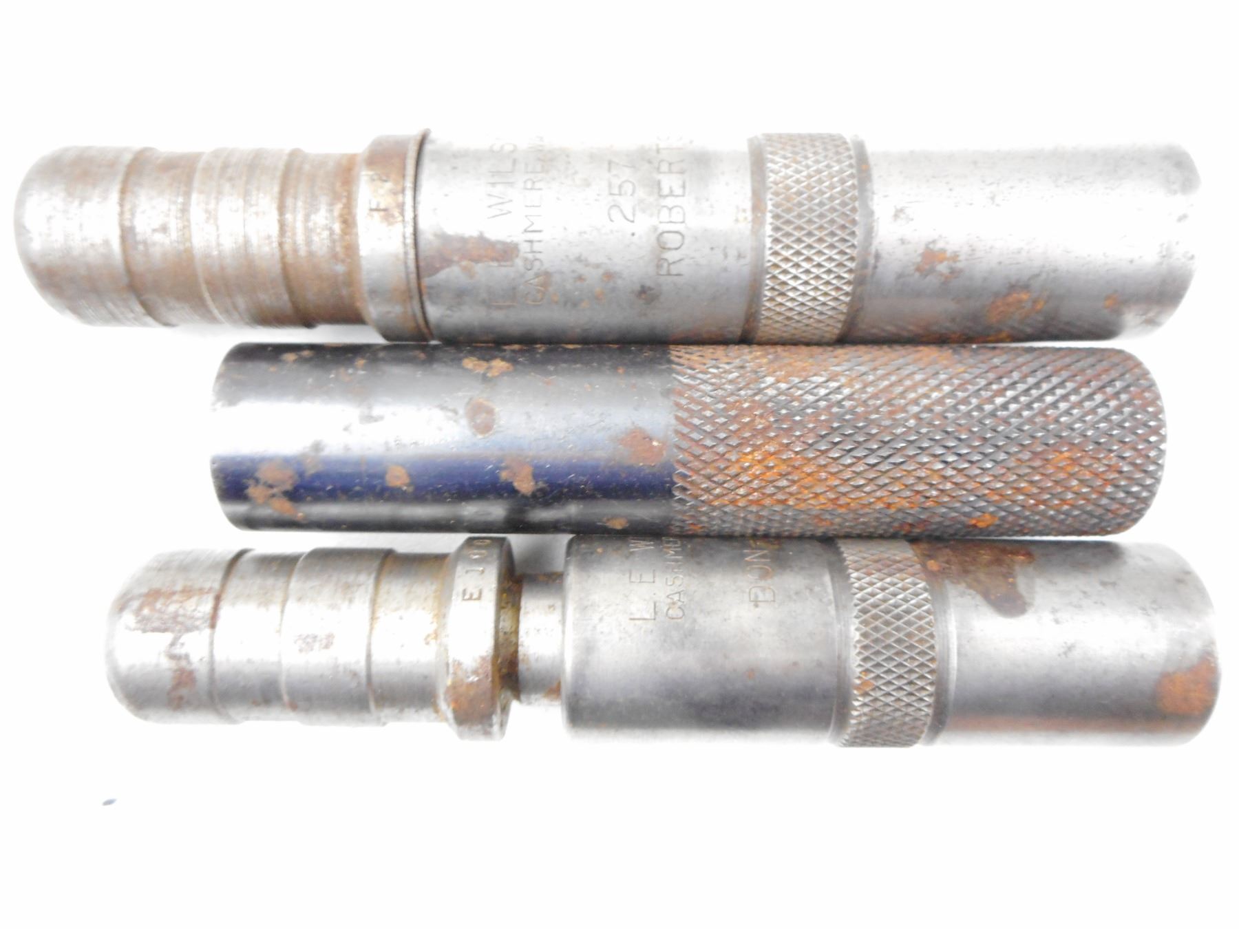 L.E. WILSON DIES , (1) DON-WASP, (1) .257 ROBERTS, (1) SHELL HOLDER PIECE, LOT OF 3