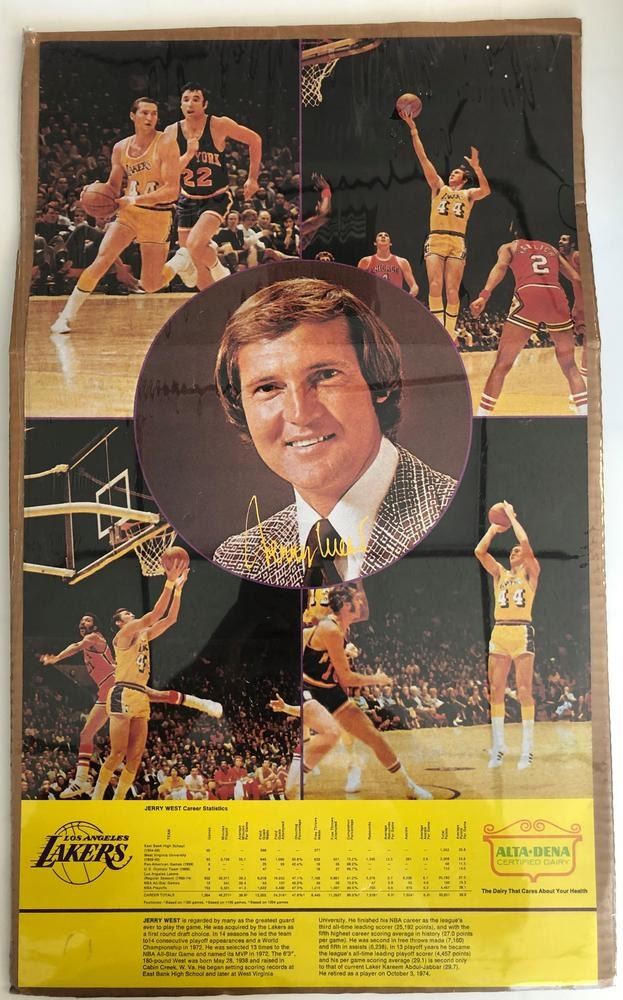 LA Lakers Jerry West signed statistics poster . Item is 24 by 14 inches