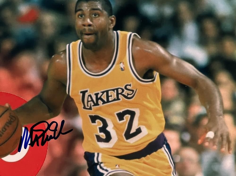 LA Lakers Magic Johnson signed photo. 8x10 inches. This item is a reprint of an original autograph