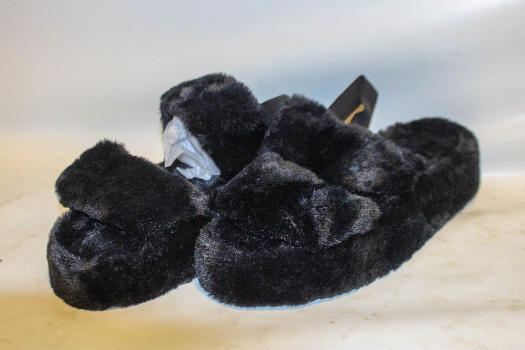 LADIES SIZE 7 FAUX FUR BLACK SLIPPER SANDALS