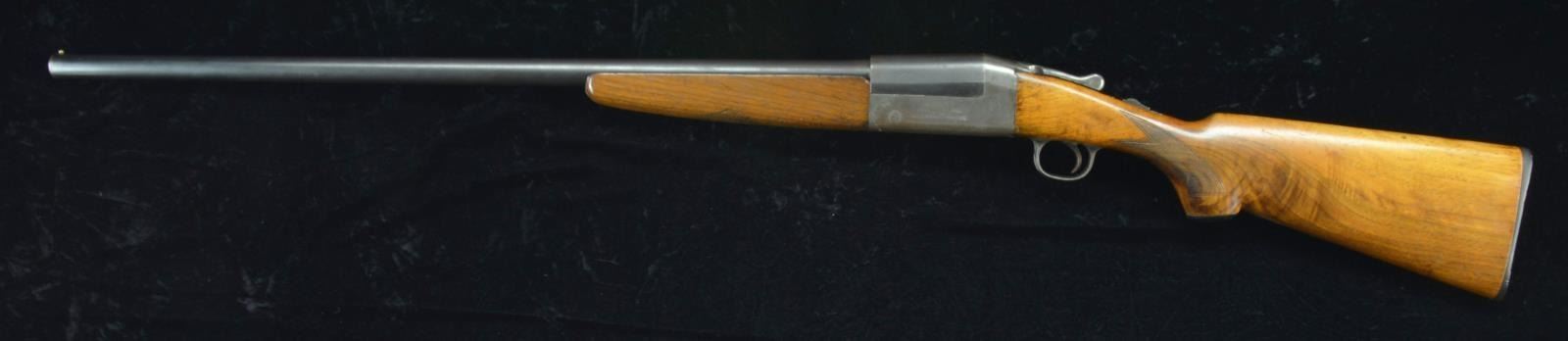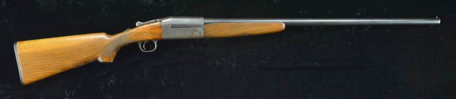 Cal. 12 Ga. 2 3/4". S# 21089. Bbl. 30" plain w/ brass bead. Case colored hammerless action w/ top tang safety & a goose on each side. Non -selective ejector. Walnut forearm & hard rubber capped pistol grip stock w/ nicely grained walnut w/ hand checkering & original buttplate. Mfg. by Ithaca prior to WWII. CONDITION: 70% dull lightly faded bbl. blue. Action retains some case colors in protected areas w/ balance fading to gray/brown. Sanded & refinished wood shows scattered scratches & marks w/ sm. chips on stock & forearm at action. Good, bright bore. Ejector is weak. PROVENANCE: From the Collection of Thomas B. Harper Jr. (22-1028/DS). CURIO. $150-250.
