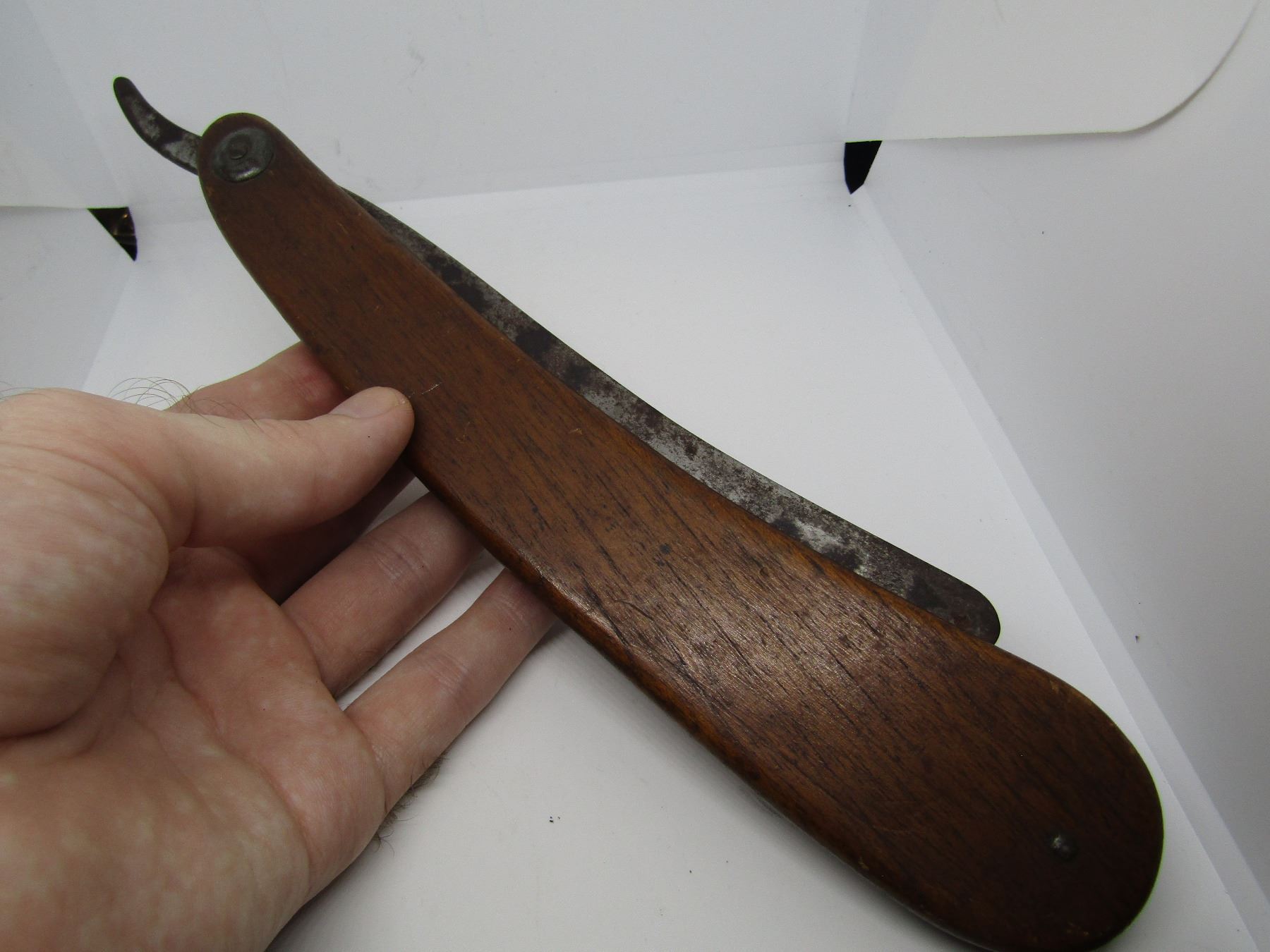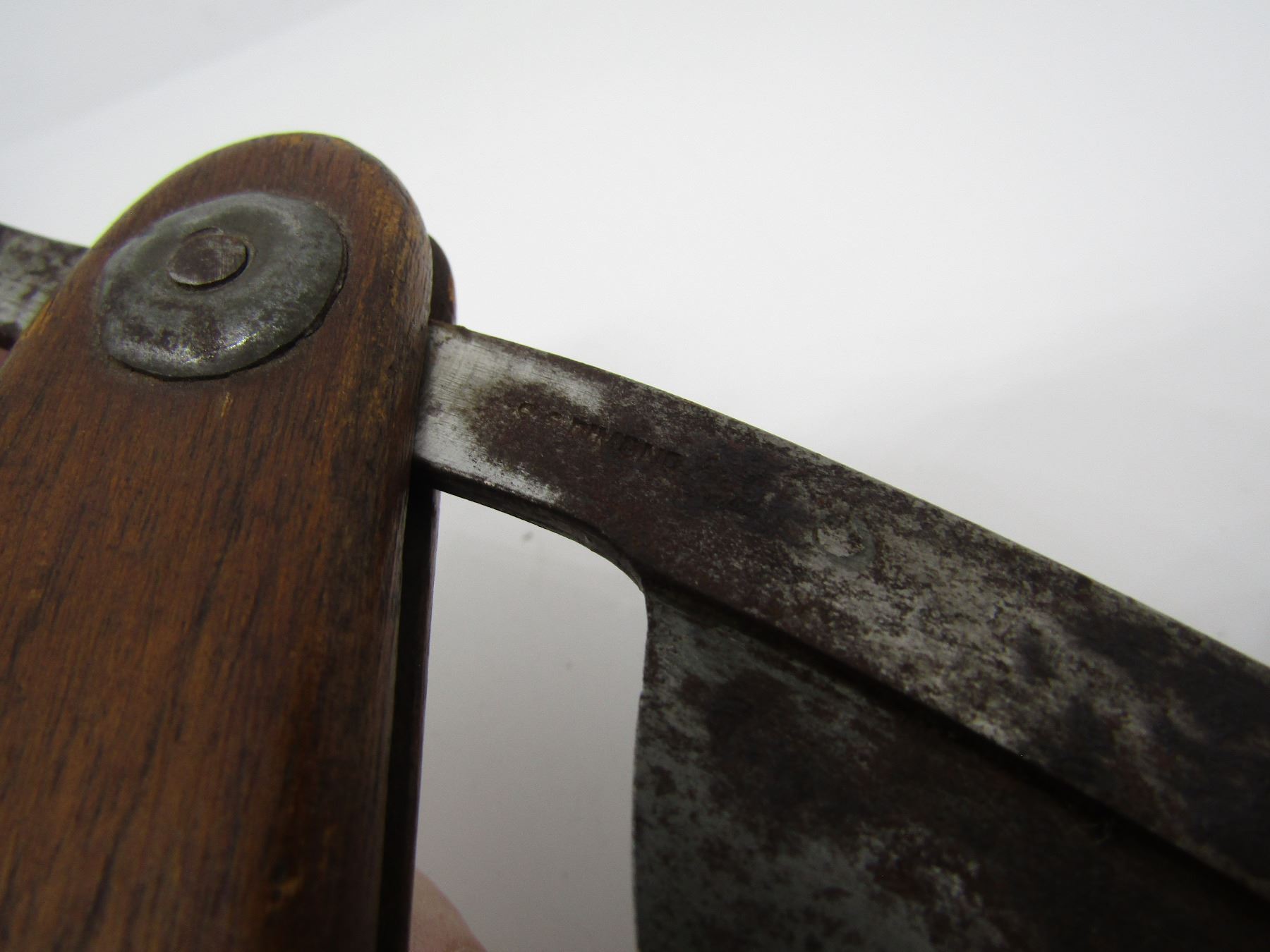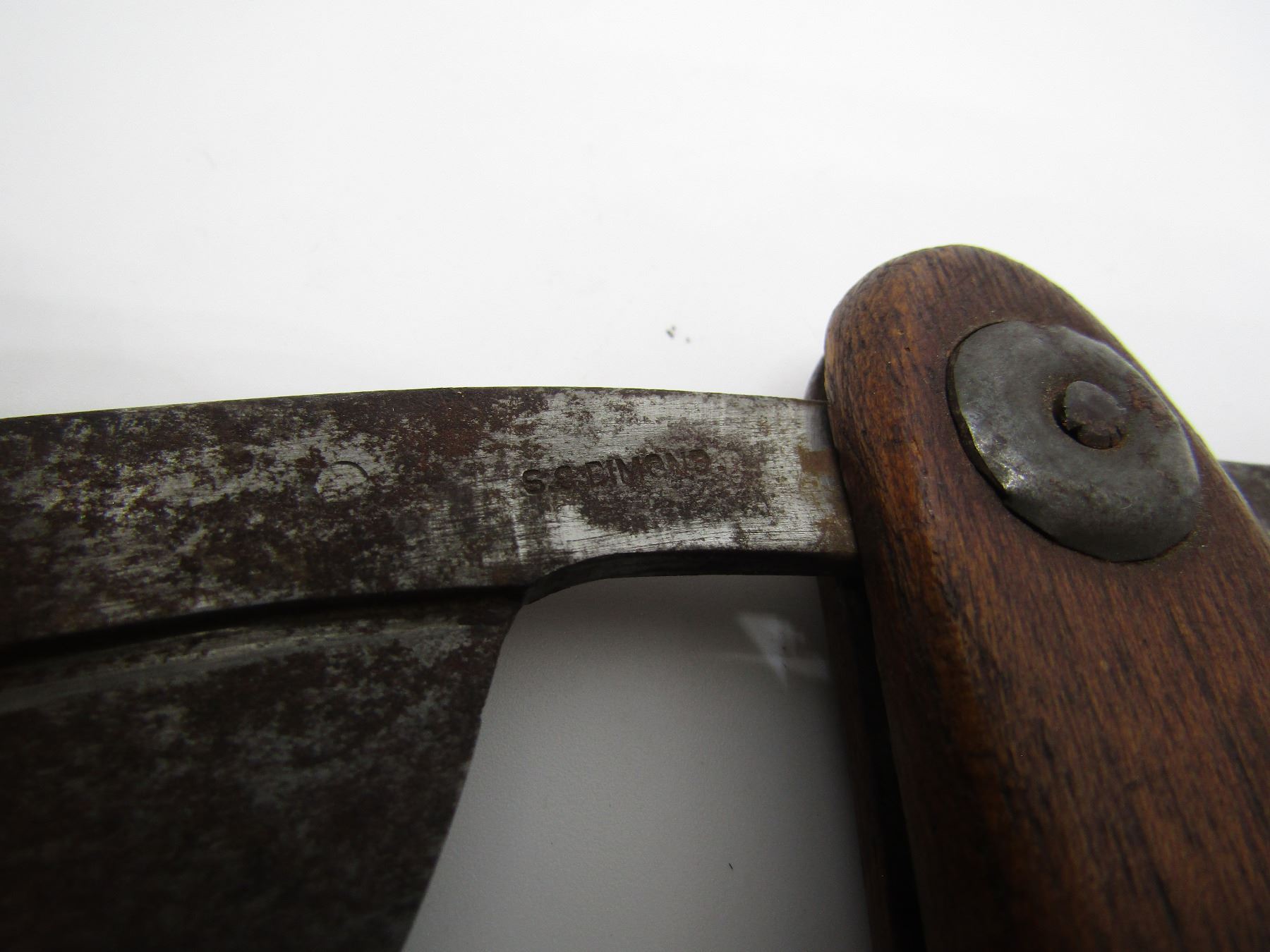 LARGE 16.5" STRAIGHT RAZOR FOR EITHER A TROPHY OR BARBER ADVERTISEMENT. APPEARS TO BE SIGNED "SS DIMOND" ON BOTH SIDES. WAS MADE DULL, NEVER SHARPENED NOT MEANT FOR USE. BLADE IS 7". PLEASE VIEW PHOTOS FORCONDITION. USA SHIPPING $5