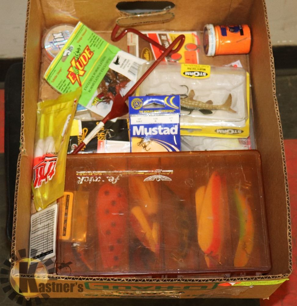 INCL. LARGE LURES IN FENWICK BOX, QUALITY BATE, TACKLE, LINE & ACCESSORIES - GENERAL, OUTDOORS