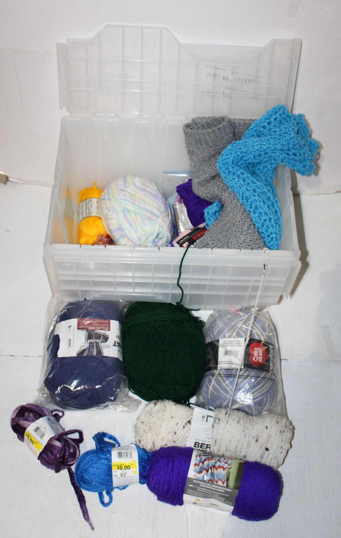 LARGE ESTATE TOTE OF YARN AND RELATED ITEMS