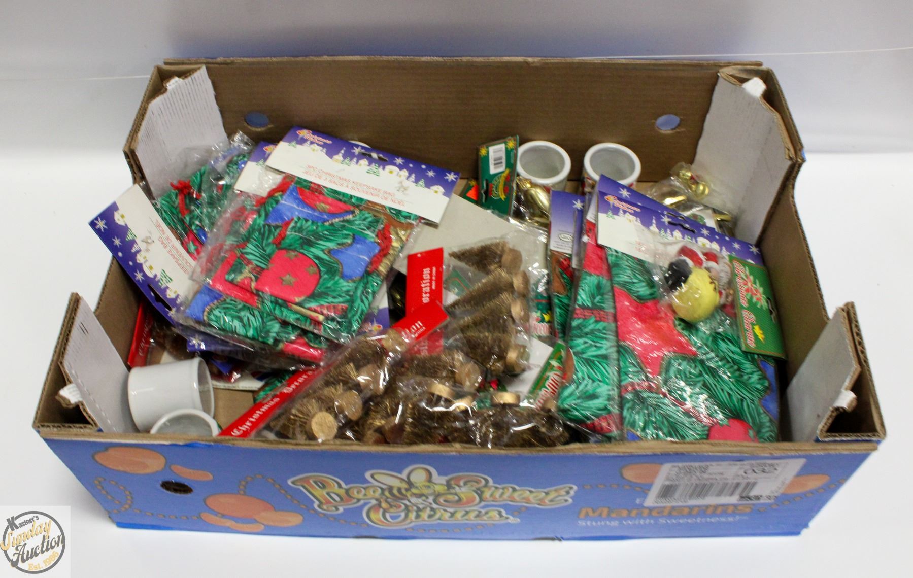 LARGE FLAT OF 50 NEW CHRISTMAS ITEMS. DECORATIONS,