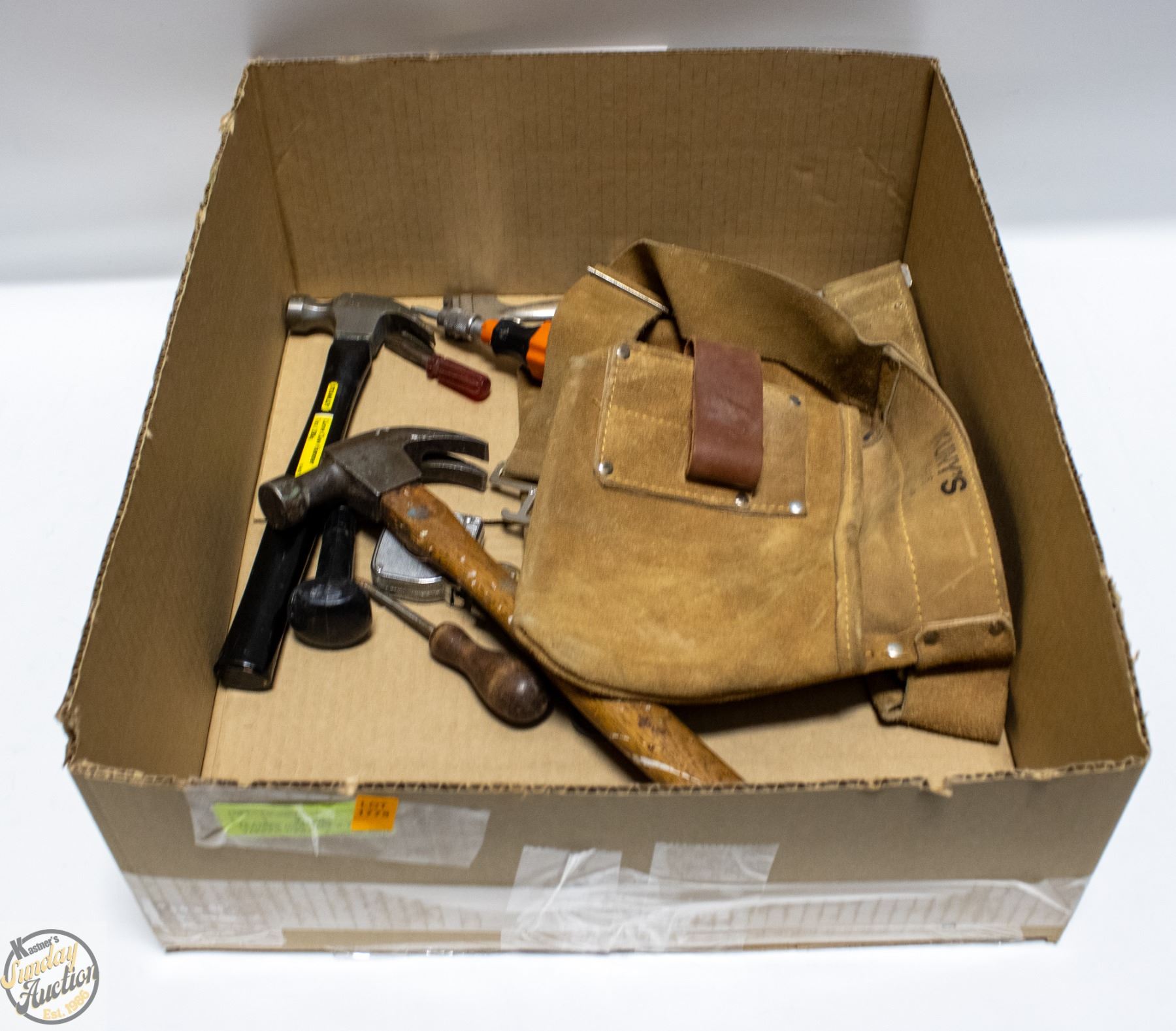 LEATHER TOOL BELT WITH VARIOUS TOOLS