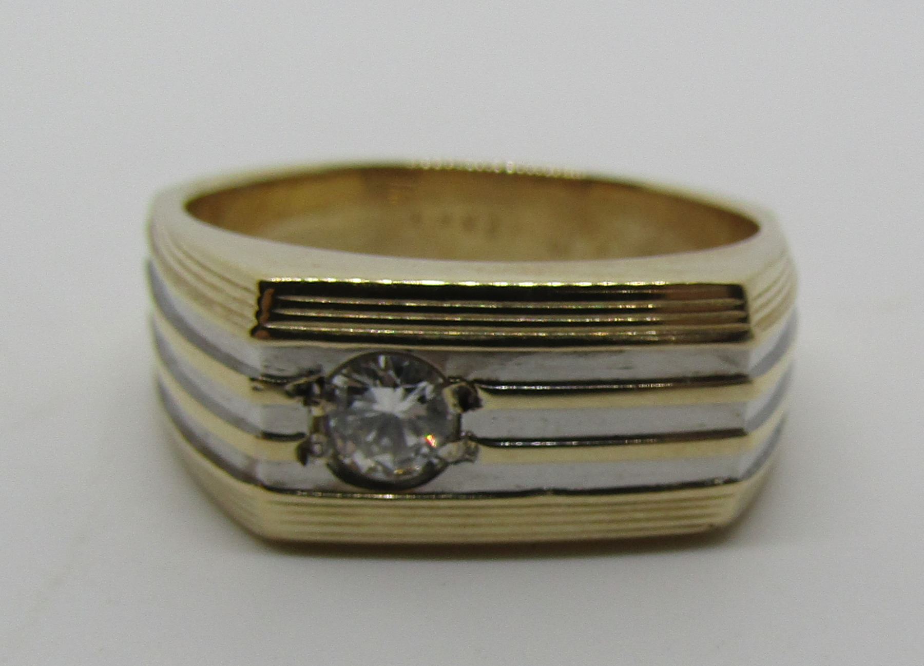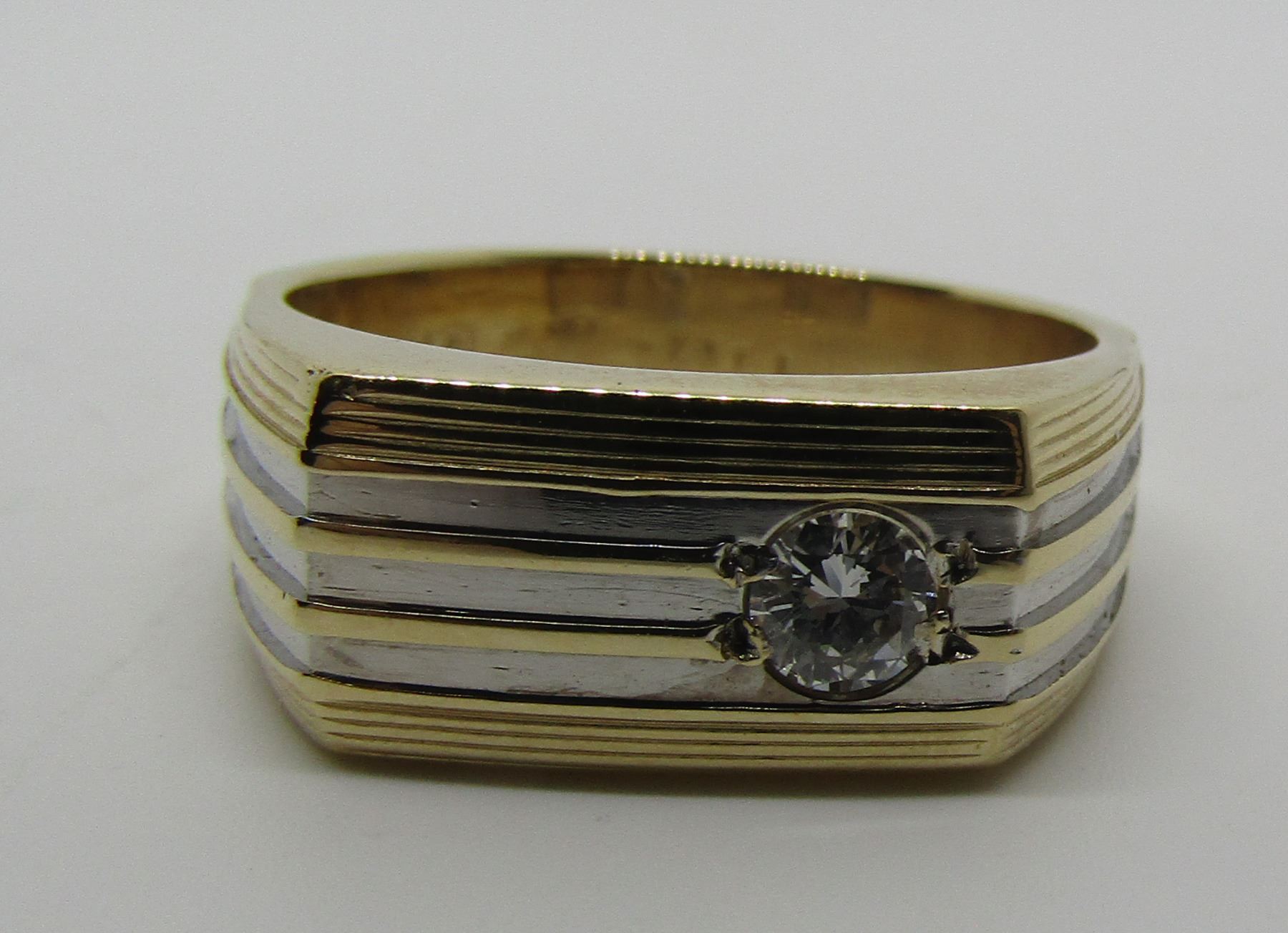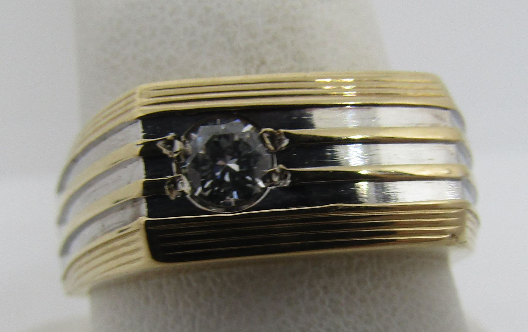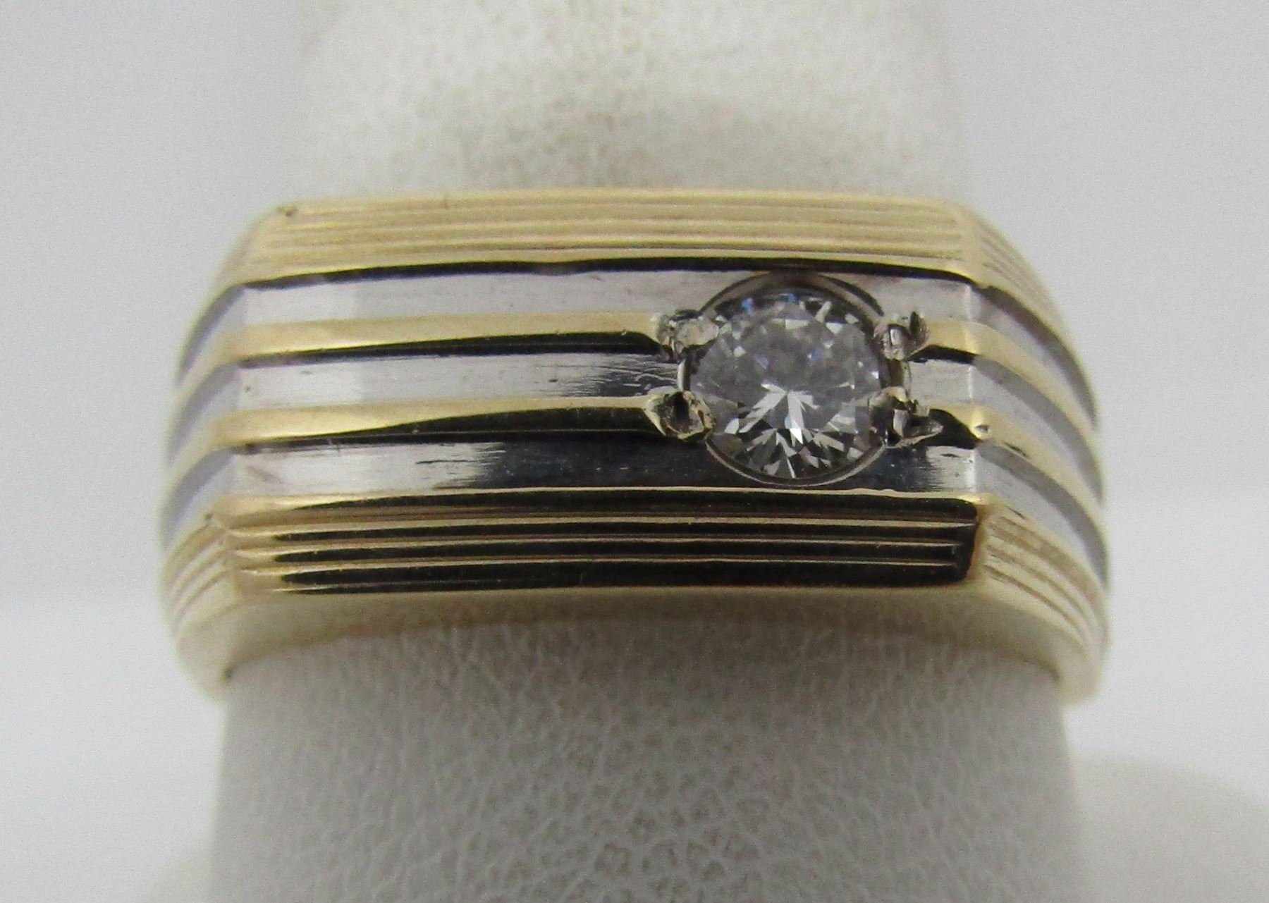 GENUINE VS DIAMOND G-H COLOR. MARKED "14K" GOLD, WEIGHS 8.5 GRAMS. 8.7 MM WIDE. SIZE 10.75. EXCELLENT CONDITION VINTAGE ESTATE. USA SHIPPING $8