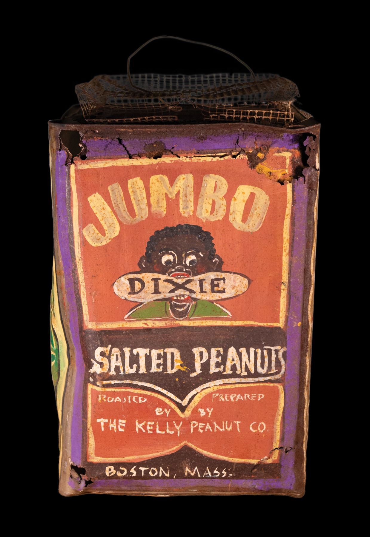 LEROY SCHMALTZ - OIL CAN HAND DECORATED LANTERN ART - JIMBO ROASTED PEANUTS.