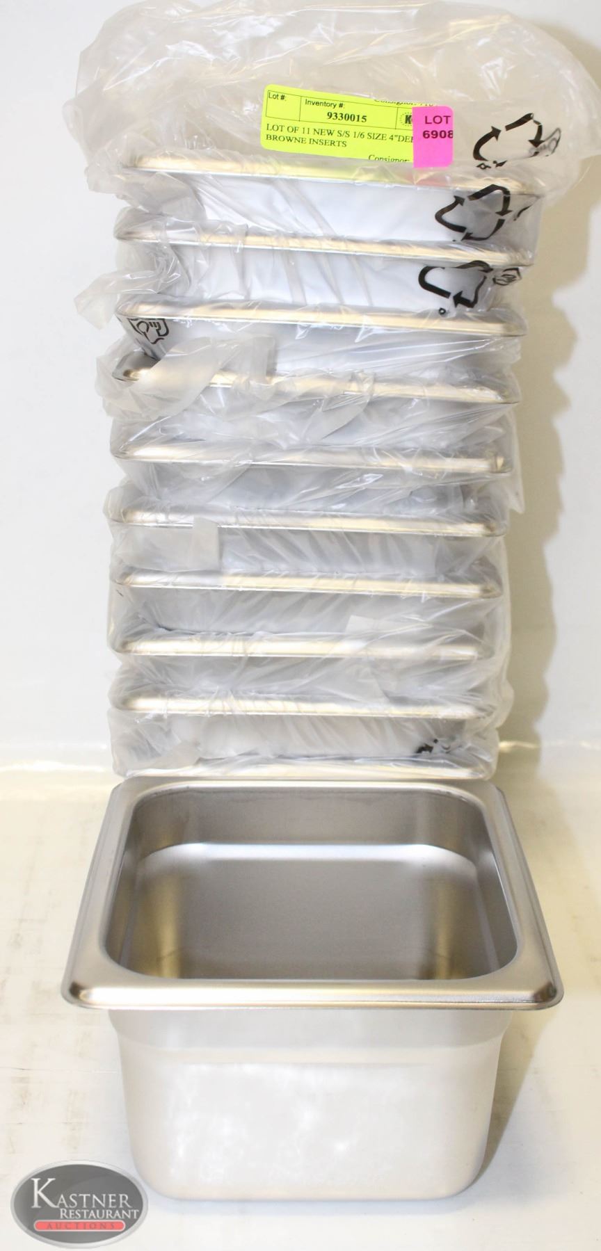 LOT OF 11 NEW S/S 1/6 SIZE 4"DEEP BROWNE INSERTS