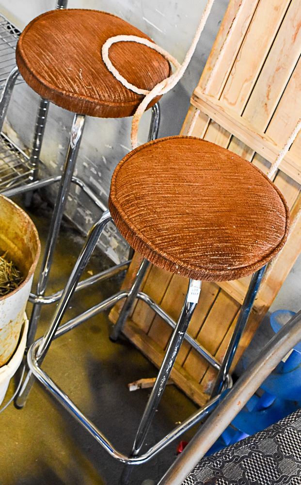 LOT OF 2 CHROME BAR STOOLS W/ BROWN CUSHIONS