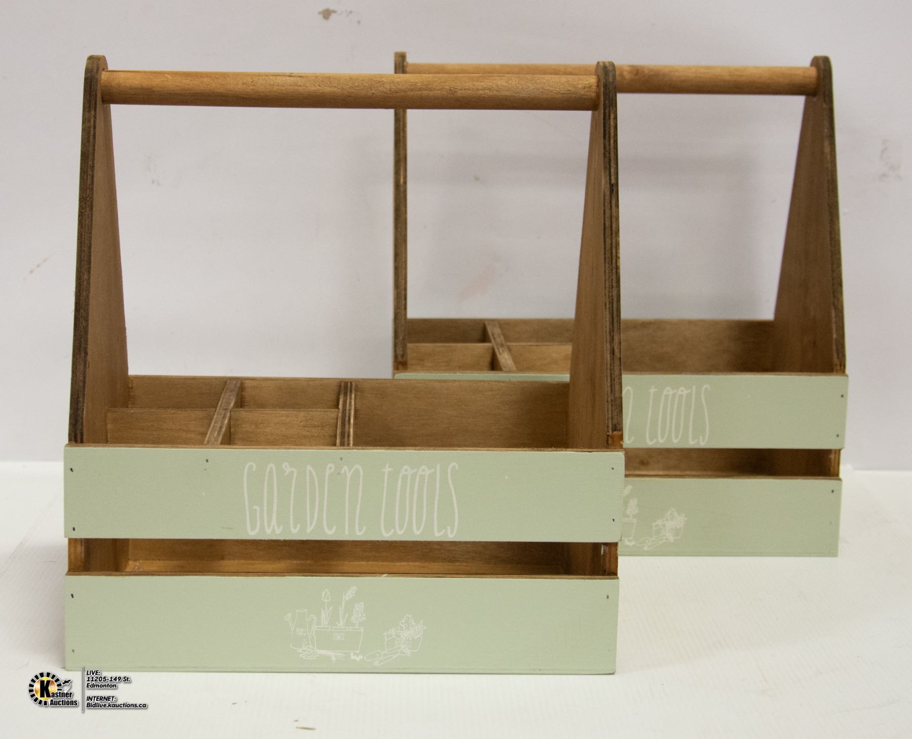 LOT OF 2 NEW WOODEN GARDEN TOOL BOXES