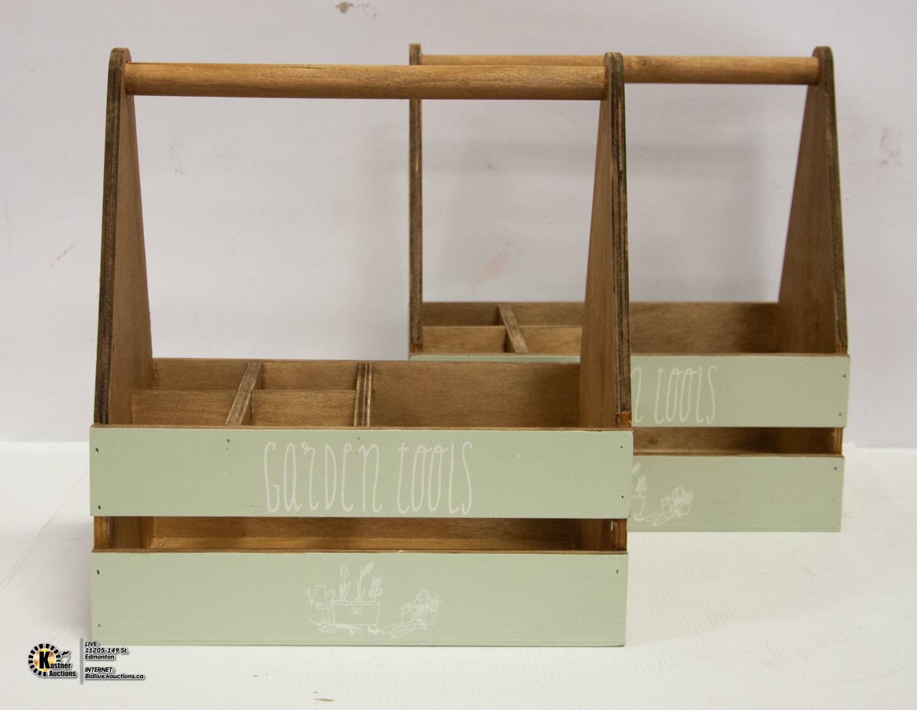 LOT OF 2 NEW WOODEN GARDEN TOOL BOXES