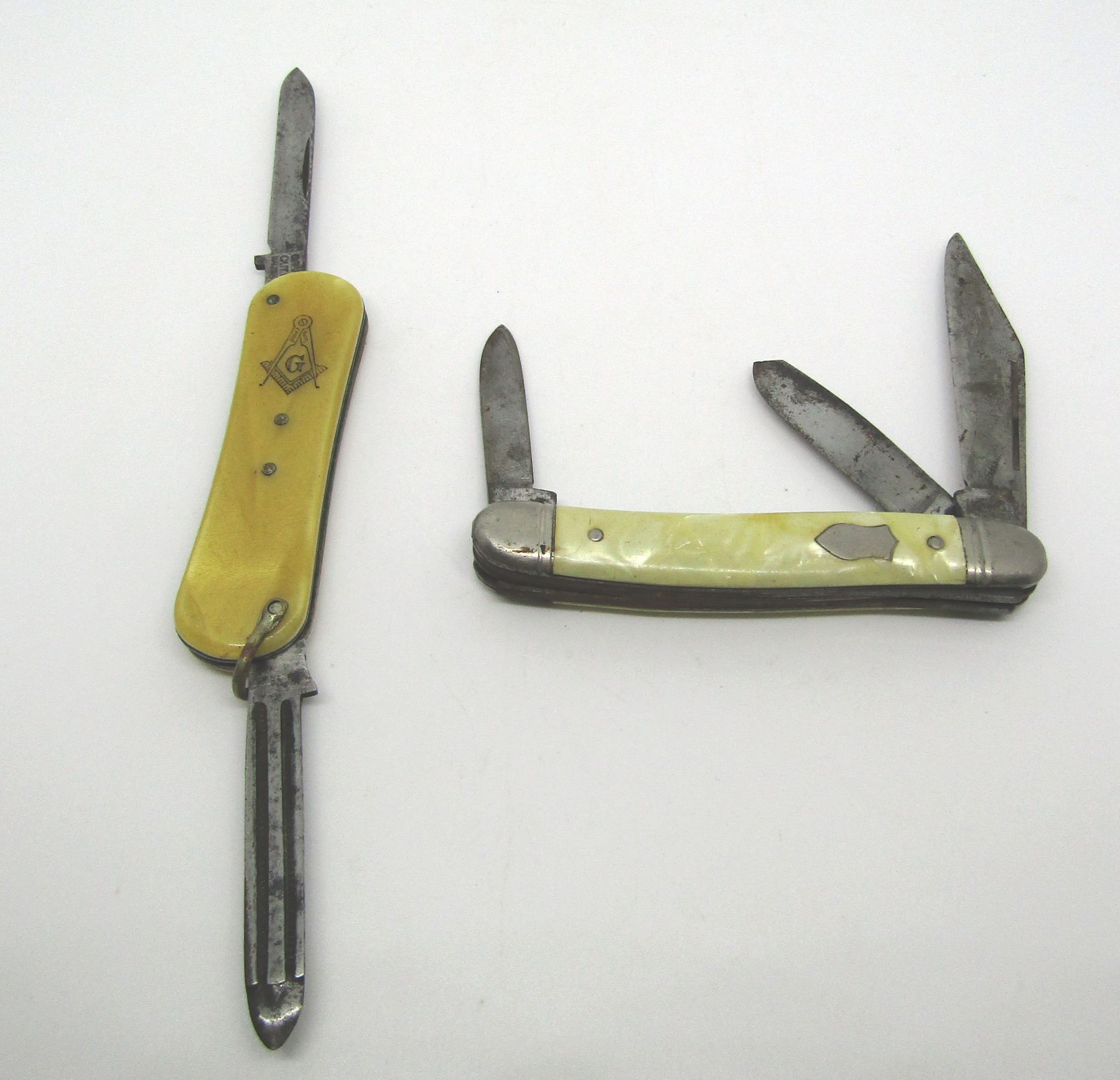 FREEMASON MASONIC FOLDING KNIFE AND NAIL FILE BY ORANGE CUT CO WALDEN NY 4" LENGTH OPENED. IMPERIAL 3-BLADE POCKETKNIFE 4.5" TOTAL LENGTH OPENED. LIKELY 1960S 1970S OR EARLIER. USA SHIPPING $5.
