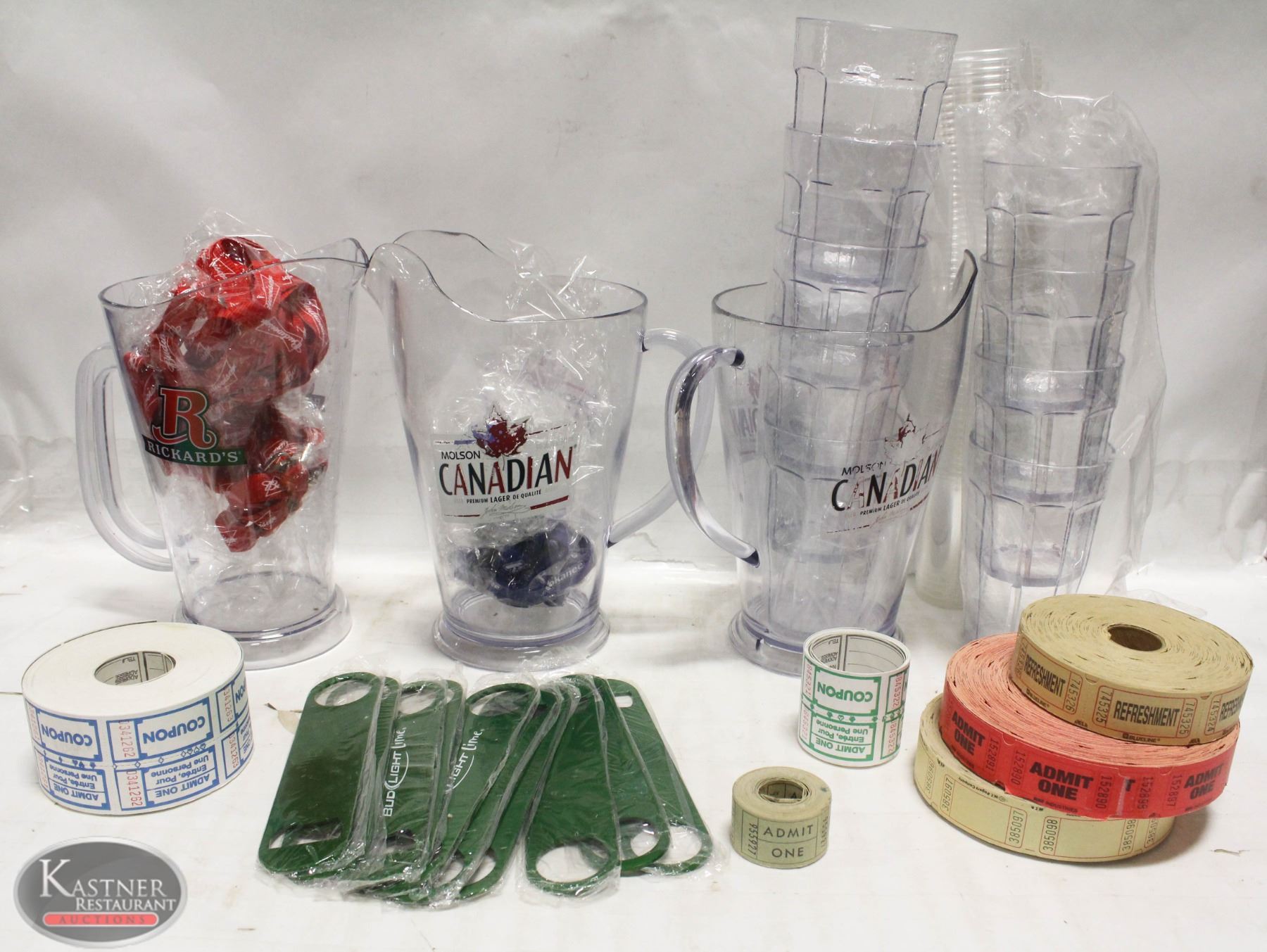 LOT OF 3 ACRYLIC BEER PITCHERS, TUMBLERS, KOKANEE