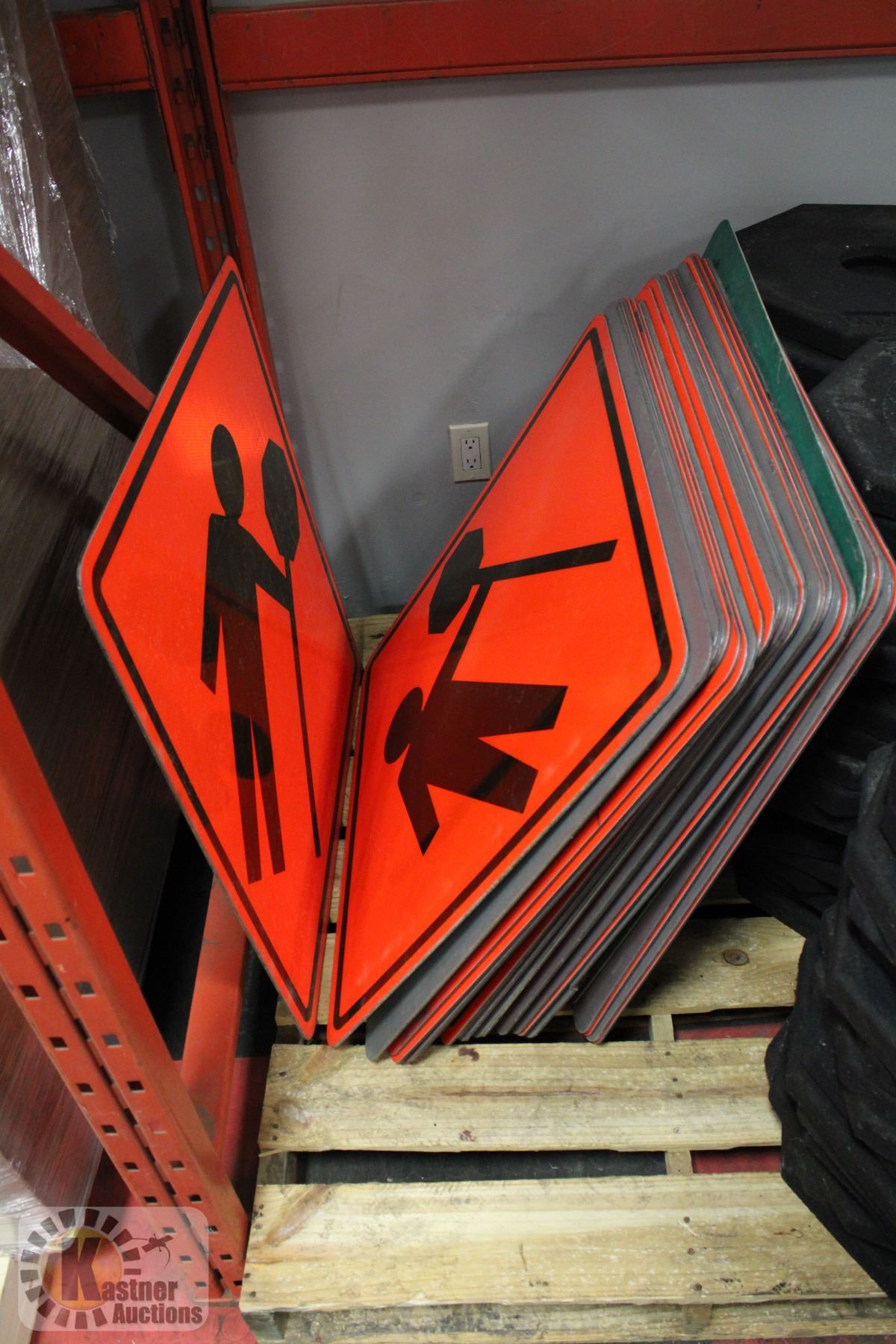 LOT OF 32 MEDIUM ROAD SIGNS (3' X 3')