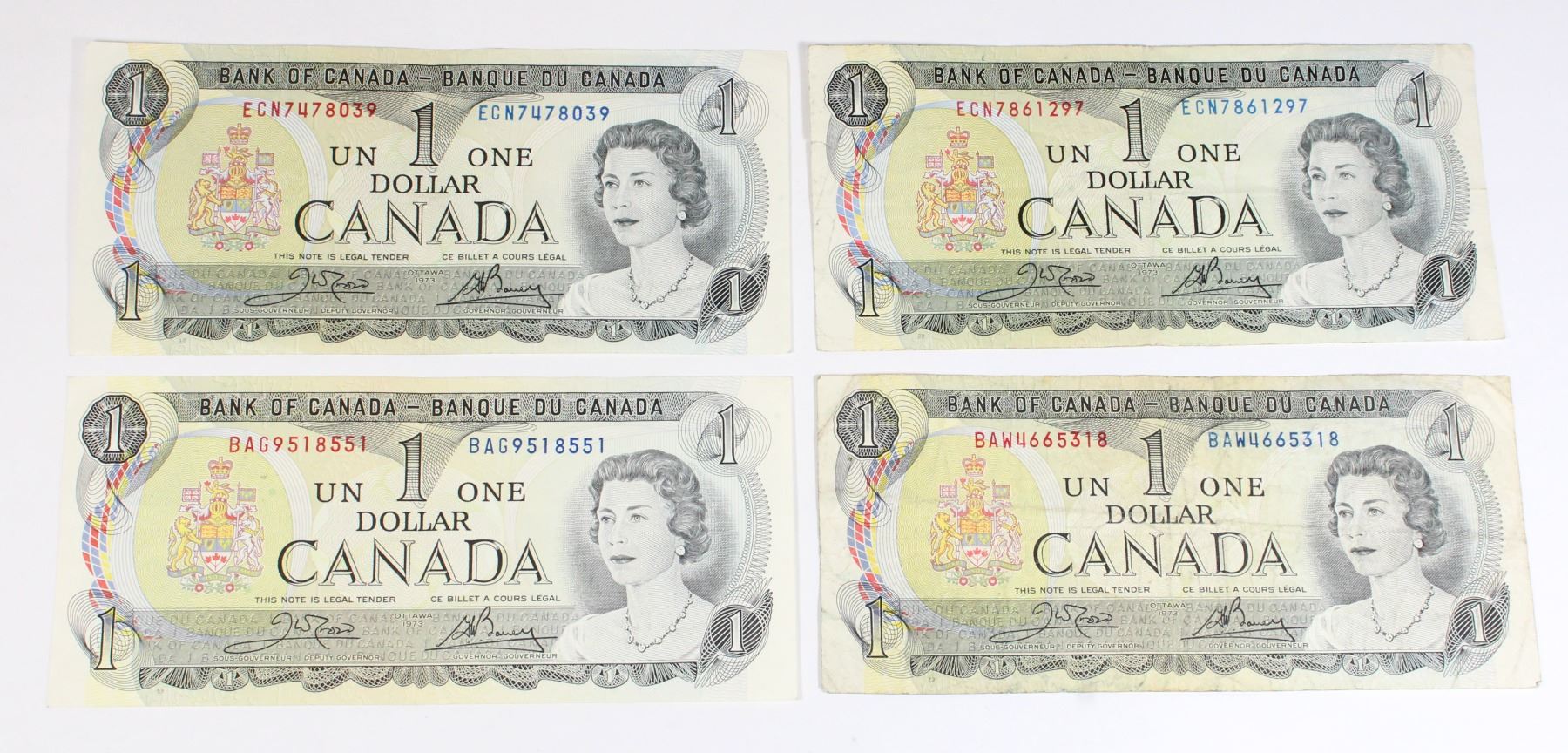 LOT OF 4 1973 CANADIAN $1 BANK NOTES