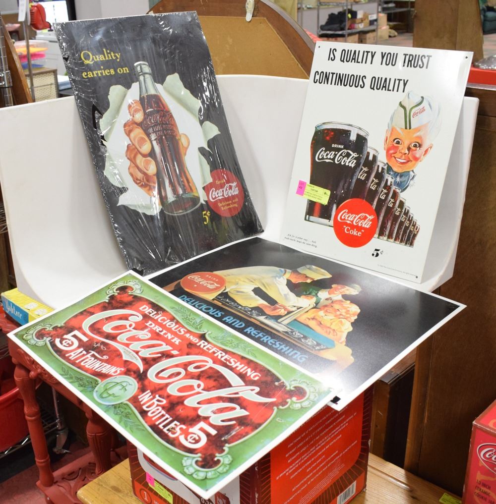 LOT OF 4 METAL COCA-COLA REPRODUCTION SIGNS 1990'S