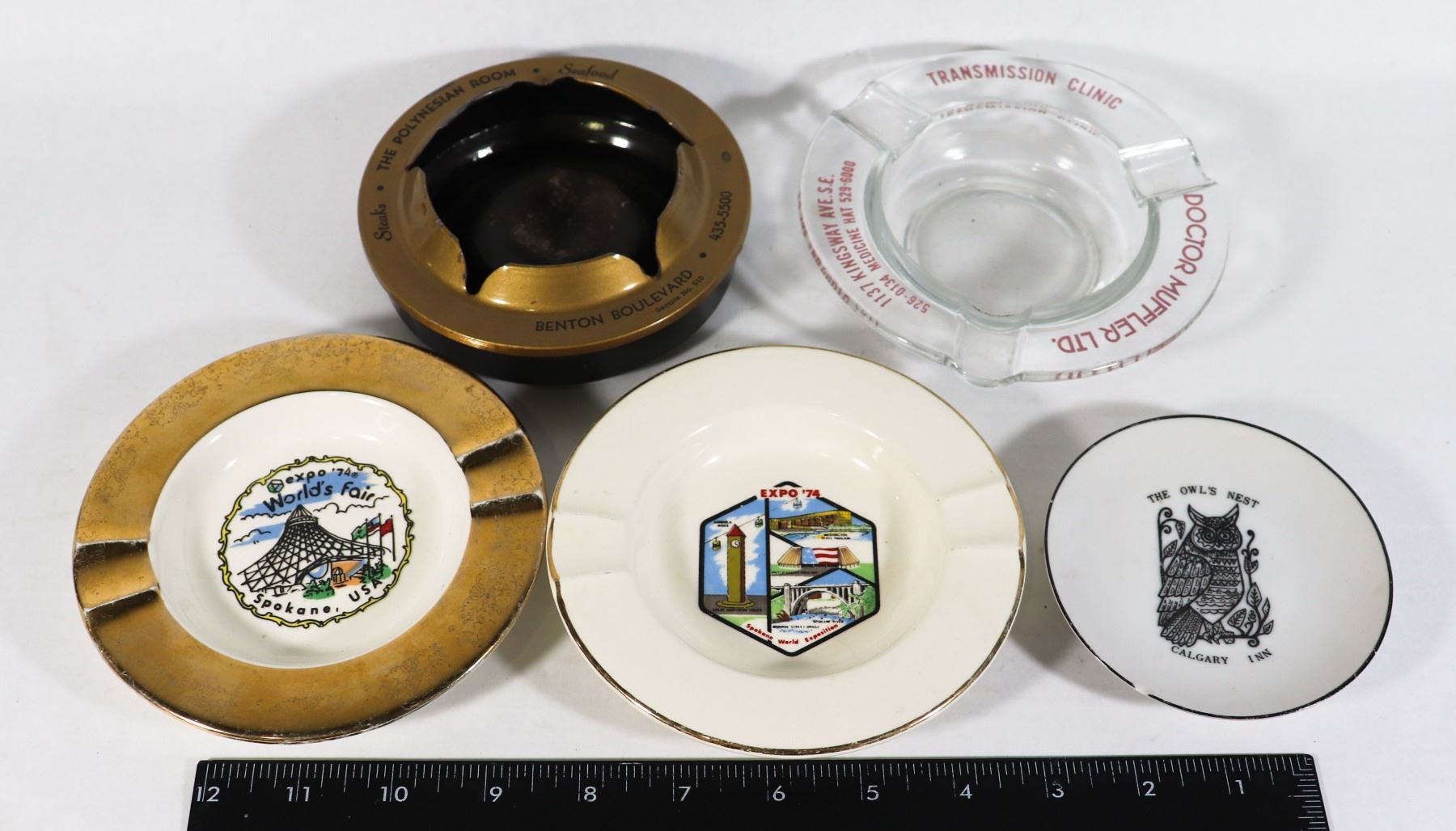 LOT OF 5 VINTAGE ASHTRAYS INC MEDICINE HAT ALBERTA