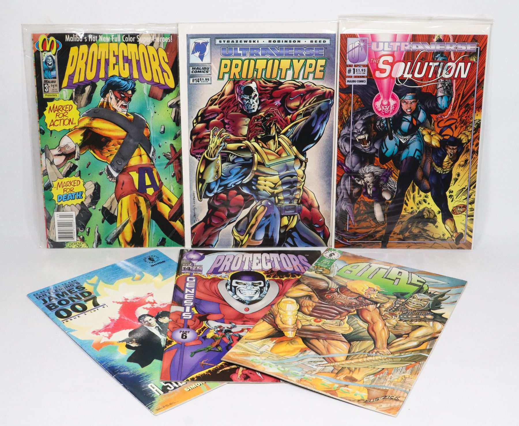 DARK HORSE IAN FLEMING'S JAMES BOND 007 #1 MALIBU PROTECTORS #3, 14 MALIBU ULTRAVERSE PROTOTYPE #14 ULTRAVERSE THE SOLUTION #1 DARK HORSE ATLAS #2***ITEM(S) LOCATED IN LETHBRIDGE ALBERTA. ALL ITEMS IN THIS AUCTION ARE ELIGIBLE FOR OUR FREE TRANSPORT TO EDMONTON OFFICE SERVICE. WORLDWIDE CANADA POST SHIPPING IS AVAILABLE